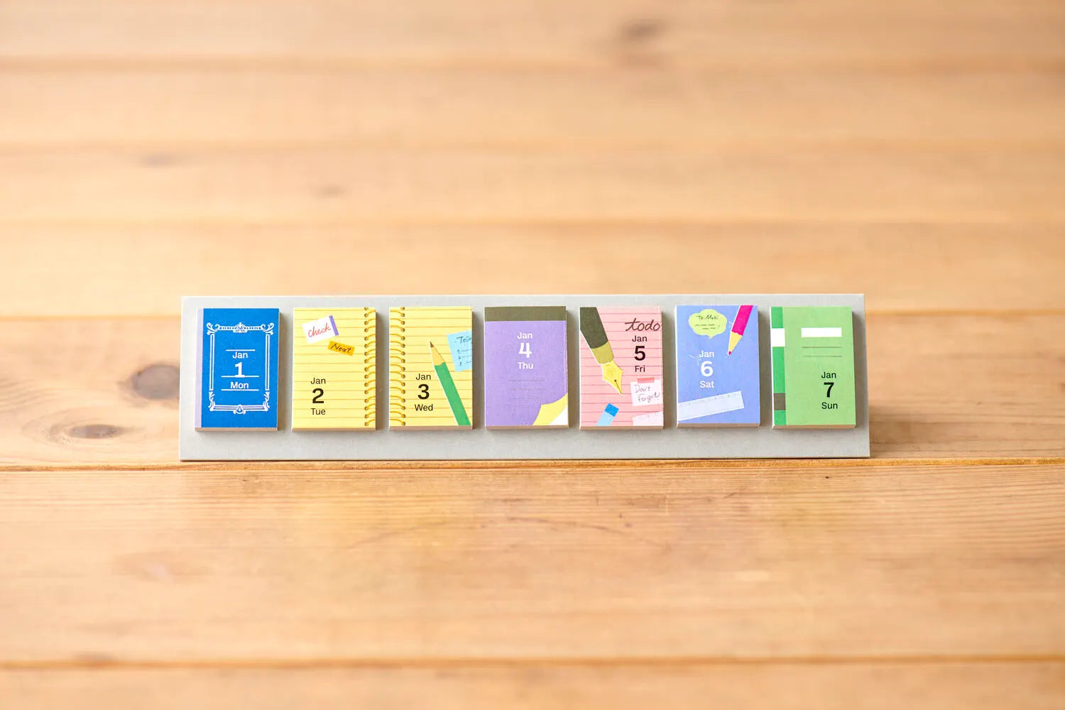 Himekuri Sticky Calendar 2024. Himekuri traditionally means a daily tear-off calendar, but Himekuri Sticky Calendar's take on it is a relatively new calendar concept since 2018. To put it simply, it’s a combination of the traditional daily calendar and a sticky memo. Typically on a himekuri daily calendar, the pages are thrown away right away. With this sticky memo version, each page not only works like a daily calendar but also can be reused in a journal or other places as a cute way of marking your daily memories throughout the year — in cards, as bookmarks, or any places where you mark dates.
