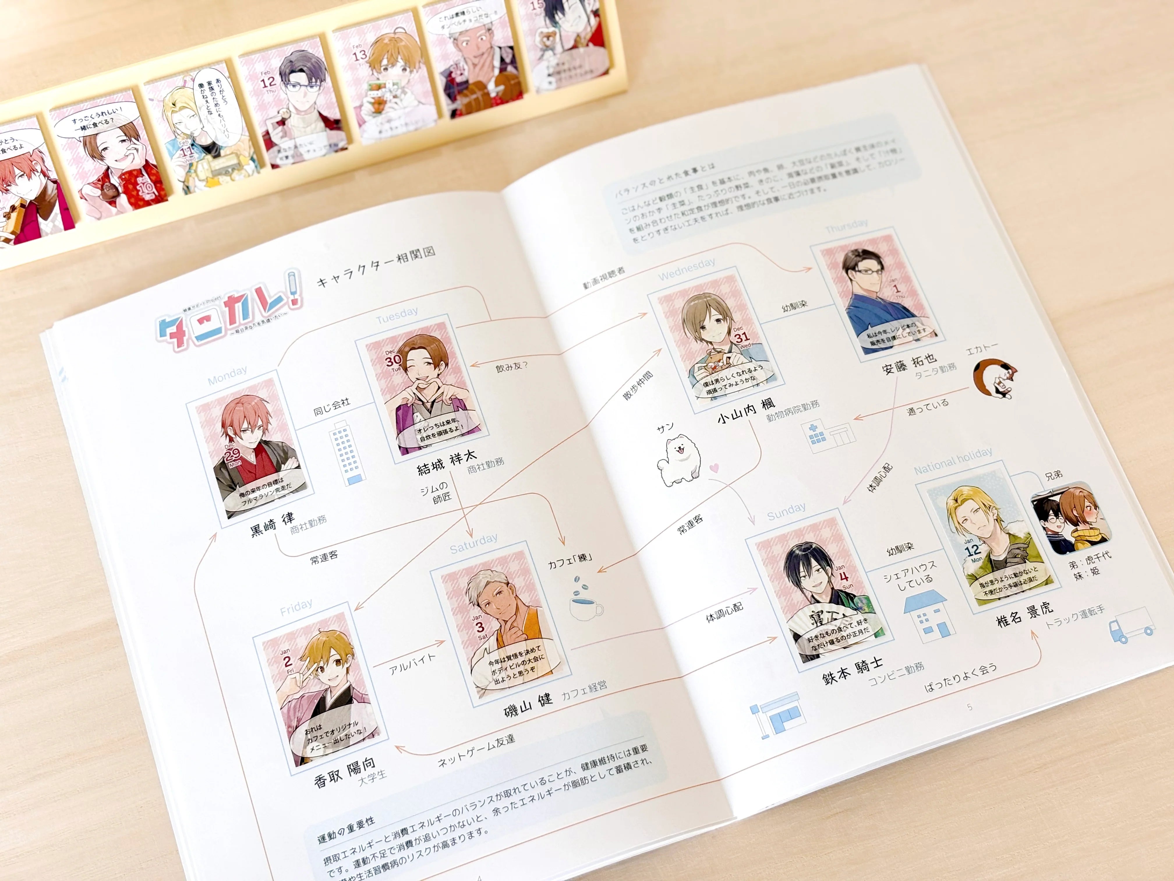 This is the second calendar from the health support project "Tanikare!", a collaboration with Tanita Corporation. Seven handsome men and more will support your health. Read more about their personalities and lives with the included info packet! It comes with a special booklet that you can complete by sticking peeled sticky notes on.