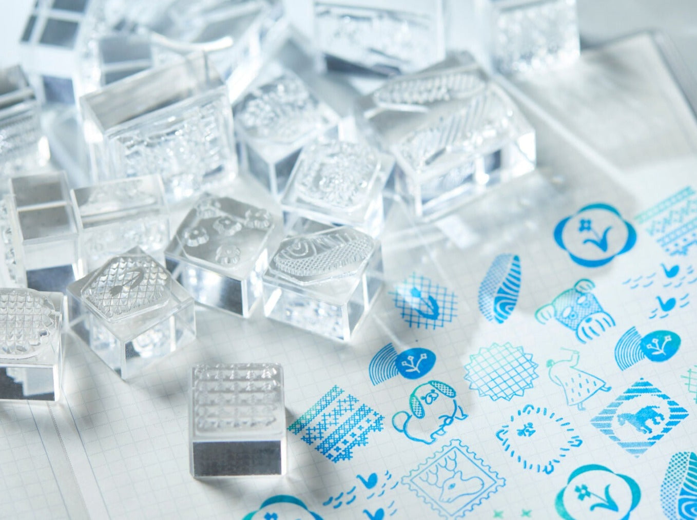 These new stamps from Hitotoki are called Kori-Jirushi, which means "ice prints" in Japanese. Resembling ice cubes and perfect for the summer season, these crystal stamps are made out of acrylic resin and transparent rubber stamp surface. Just like clear stamps, the see-through feature will allow you to better locate your anticipated stamping area. These stamp designs also feature popular artists that collaborated with Hitotoki in the past, so you may find some of your favorite artists' illustrations in Small Stamps, Large Stamps or Stamp Sets - Set of 6.