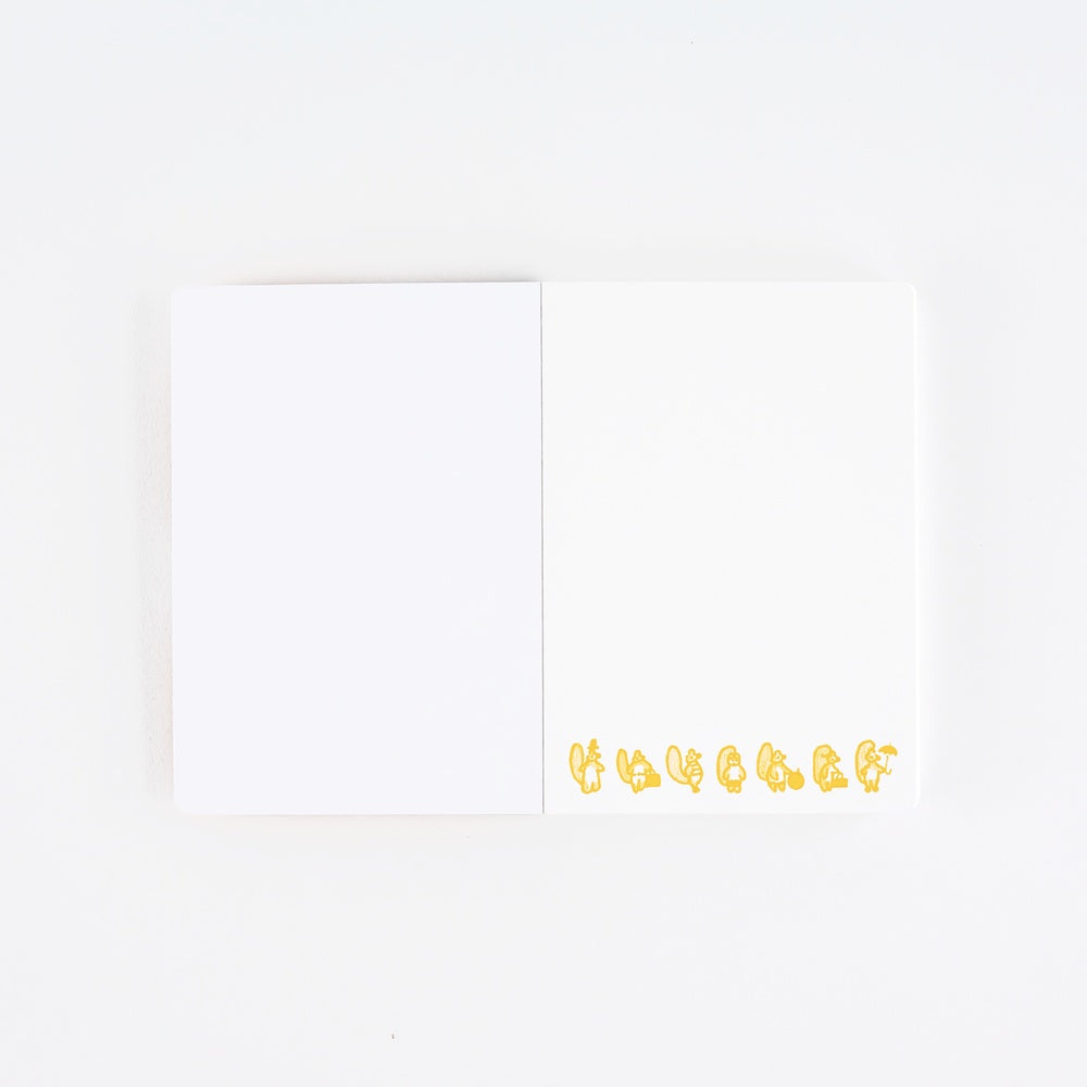 This A6 notepad has 155 pages. The paper inside is blank except for a lightly printed illustration, and the pages are glued in instead of sewn, making them very easy to rip out for shopping lists or passing along messages.
