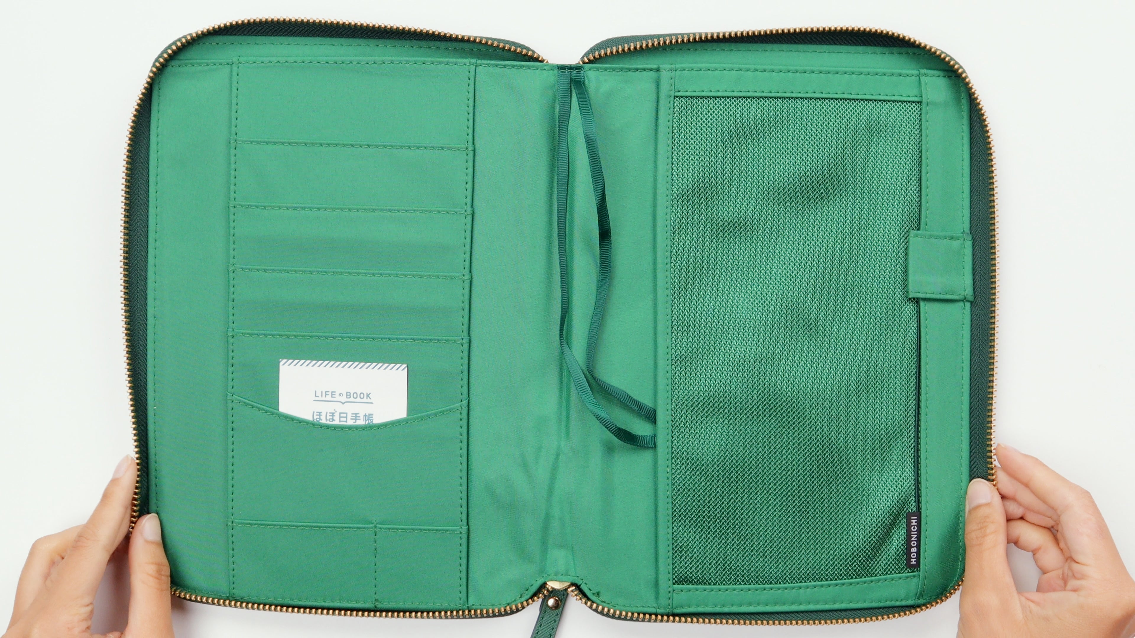 This cover will comfortably fit A5 notebooks with a spine of 0.5 inches (1.27cm) or smaller. Though it has the capacity to fit spines larger than 0.5in, the cover might have a tighter fit. Add a clear Hobonichi Cover on Cover to protect this cover from wear and tear and add extra space for storing photos, stickers, and postcards.