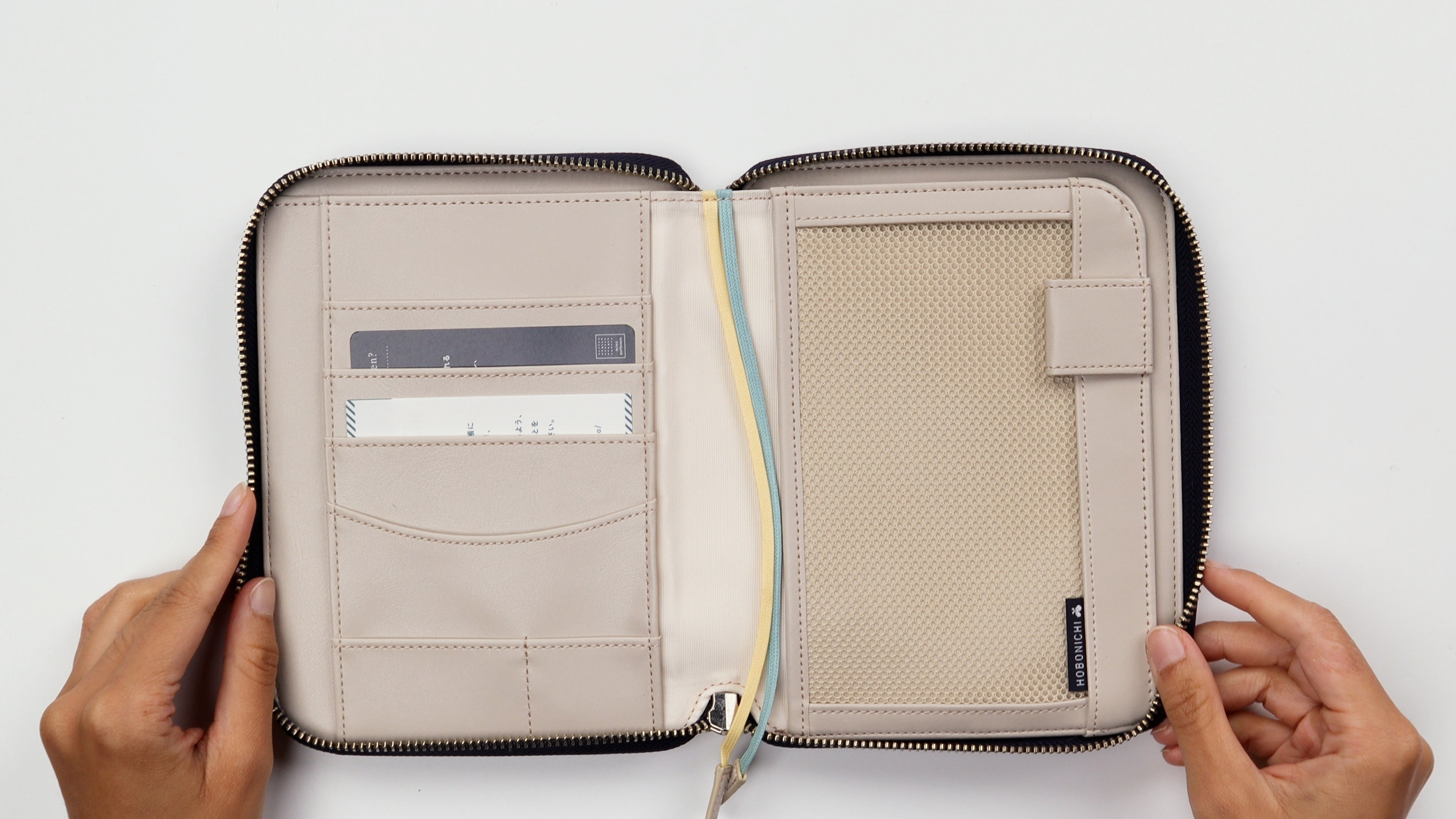 This cover will comfortably fit A6 notebooks with a spine of 0.5 inches (1.27cm) or smaller. Though it has the capacity to fit spines larger than 0.5in, the cover might have a tighter fit. Add a clear Hobonichi Cover on Cover to protect this cover from wear and tear and add extra space for storing photos, stickers, and postcards.