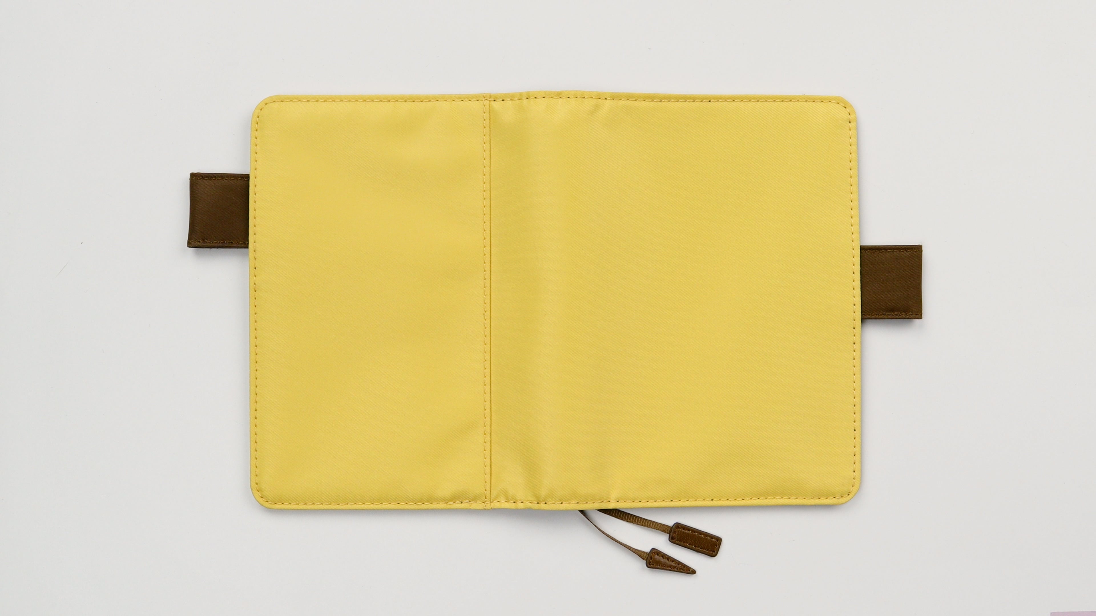 This techo cover will comfortably fit A6 notebooks with a spine of 0.5 inches (1.27cm) or smaller. Though it has the capacity to fit spines larger than 0.5in, the cover might have a tighter fit. Add a clear Hobonichi Cover on Cover to protect this cover from wear and tear and add extra space for storing photos, stickers, and postcards.