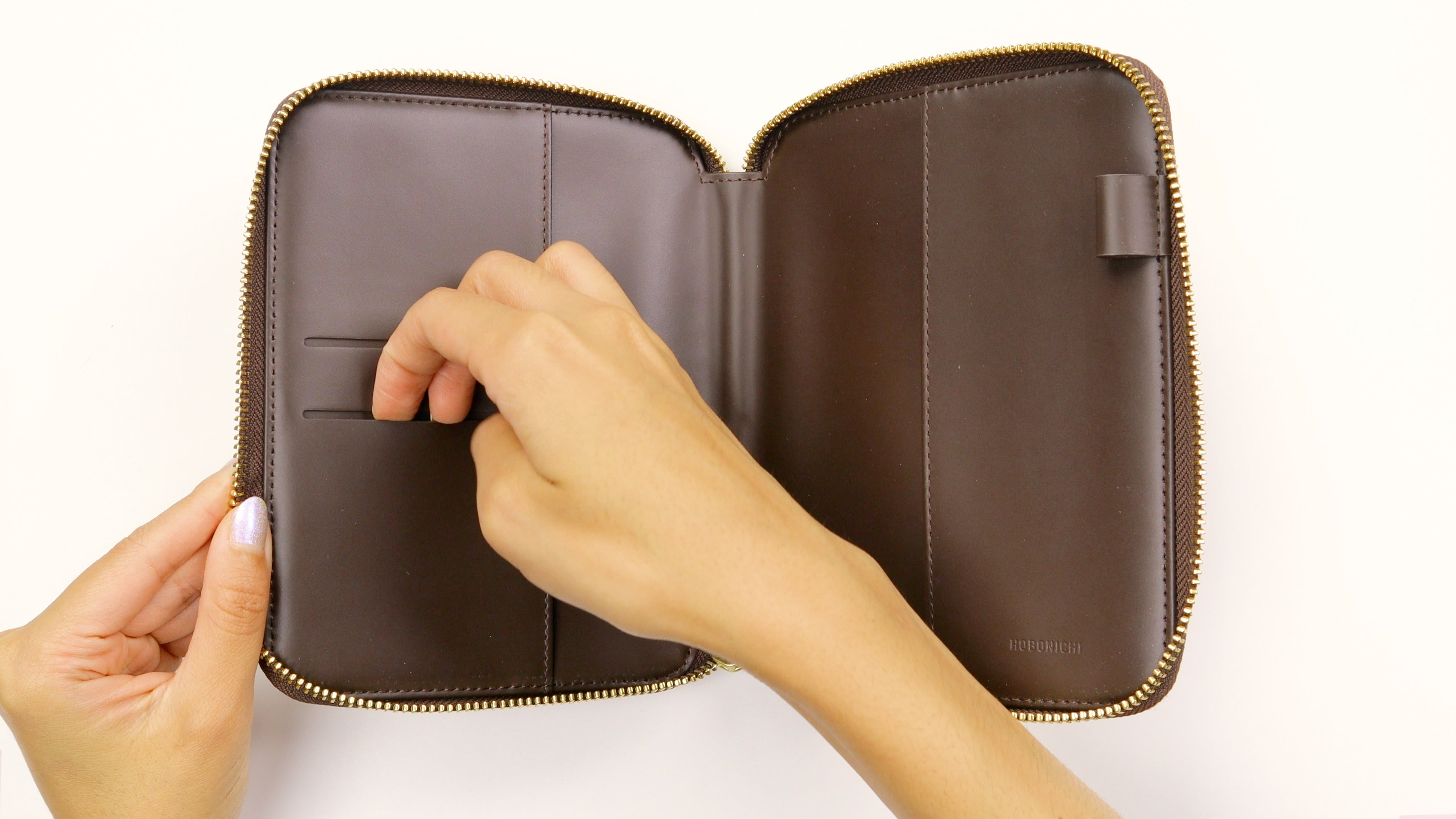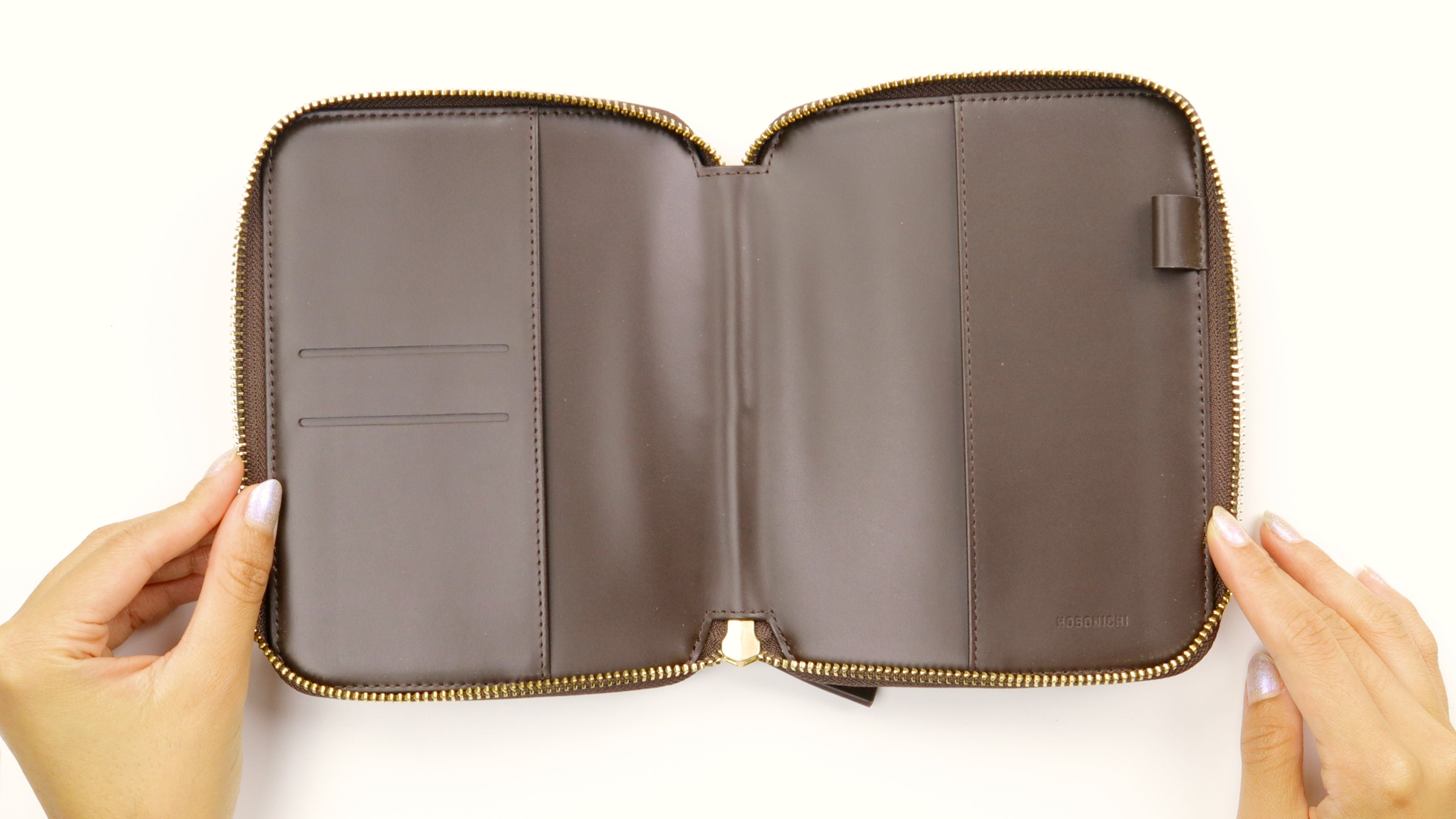 This techo cover will comfortably fit A6 notebooks with a spine of 0.5 inches (1.27cm) or smaller. Though it has the capacity to fit spines larger than 0.5in, the cover might have a tighter fit. Add a clear Hobonichi Cover on Cover to protect this cover from wear and tear and add extra space for storing photos, stickers, and postcards.