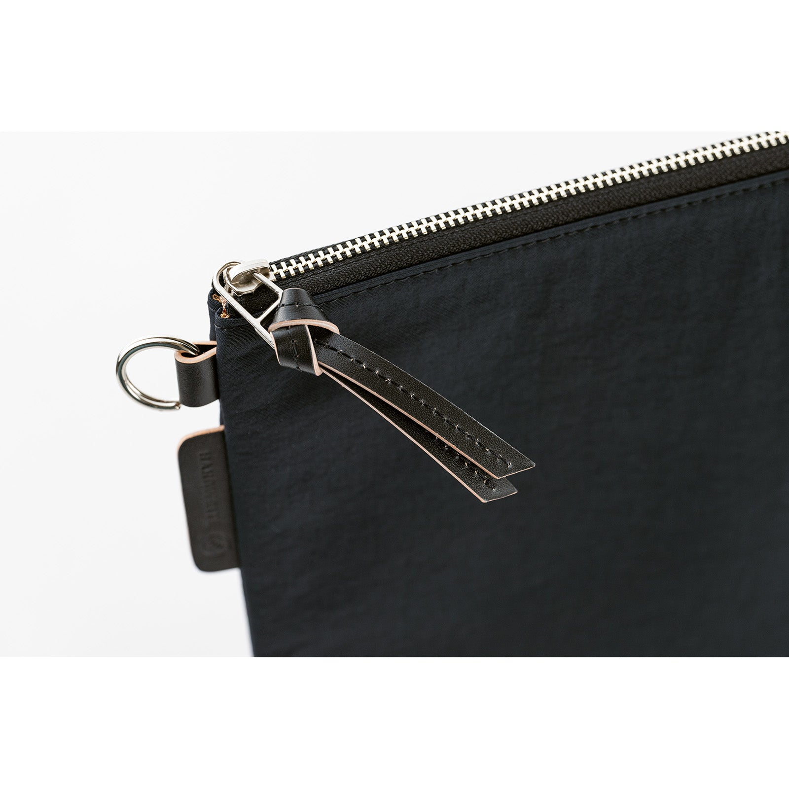 Hobonichi Tragen Flat Pouch - A pouch to store the Hobonichi Techo HON. The L-shape zipper opens the pouch extra wide for easy access, but doesn’t have a gusset and is flat so it looks extremely simple and smart. We aimed for a casual beauty that is effortlessly cool. This pouch is nice and light and is made with the same material as the Tragen cover, which uses a soft nylon with an elegant sheen.