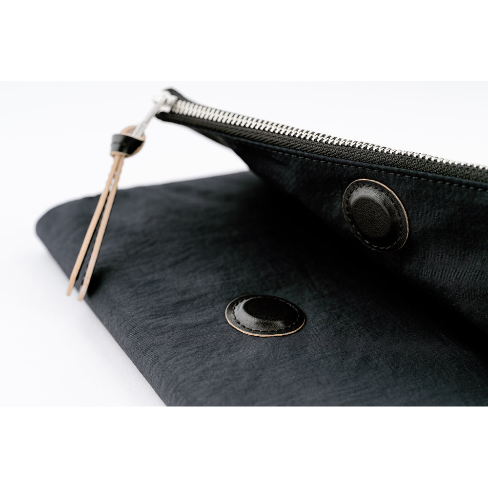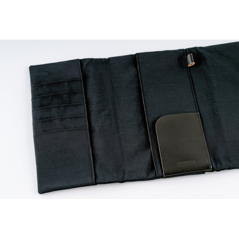 "Tragen" means "to carry" in German. This cover, part of Hobonichi's 2024 spring release, has been designed to help users carry around all their day-to-day and stationery essentials along with their planner or notebook, with a sleek, streamlined aesthetic. The front flap is a gusseted zip pocket that folds over and is secured with magnetic closure, perfect for pens and small accessories; inside, there are multiple card slots and a leather inner pocket. The back features yet another pocket, large enough for a Hobonichi Weeks Memo Pad.