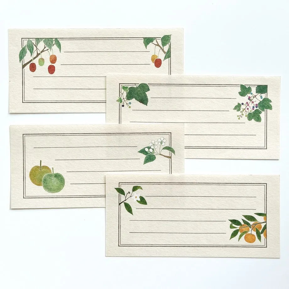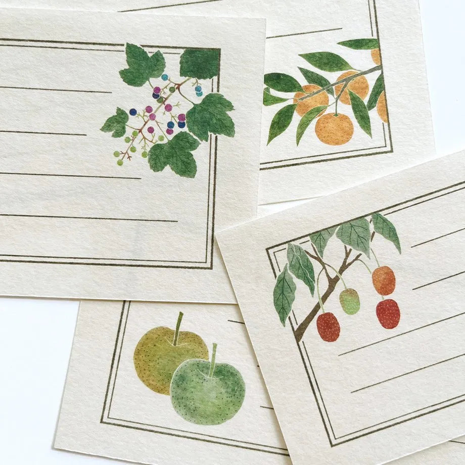 A stylish notepad inspired by botanical picture books from Japan’s Edo period. It features charming illustrations of seasonal Japanese fruits, including Japanese Chestnut, Japanese Pear, Wild Grape, and Yamato Tangerine. The warm yet modern design adds a touch of elegance to your messages. Made with Mino washi paper, it offers a fun, rough texture that enhances the unique and enjoyable feel of writing on traditional washi paper.