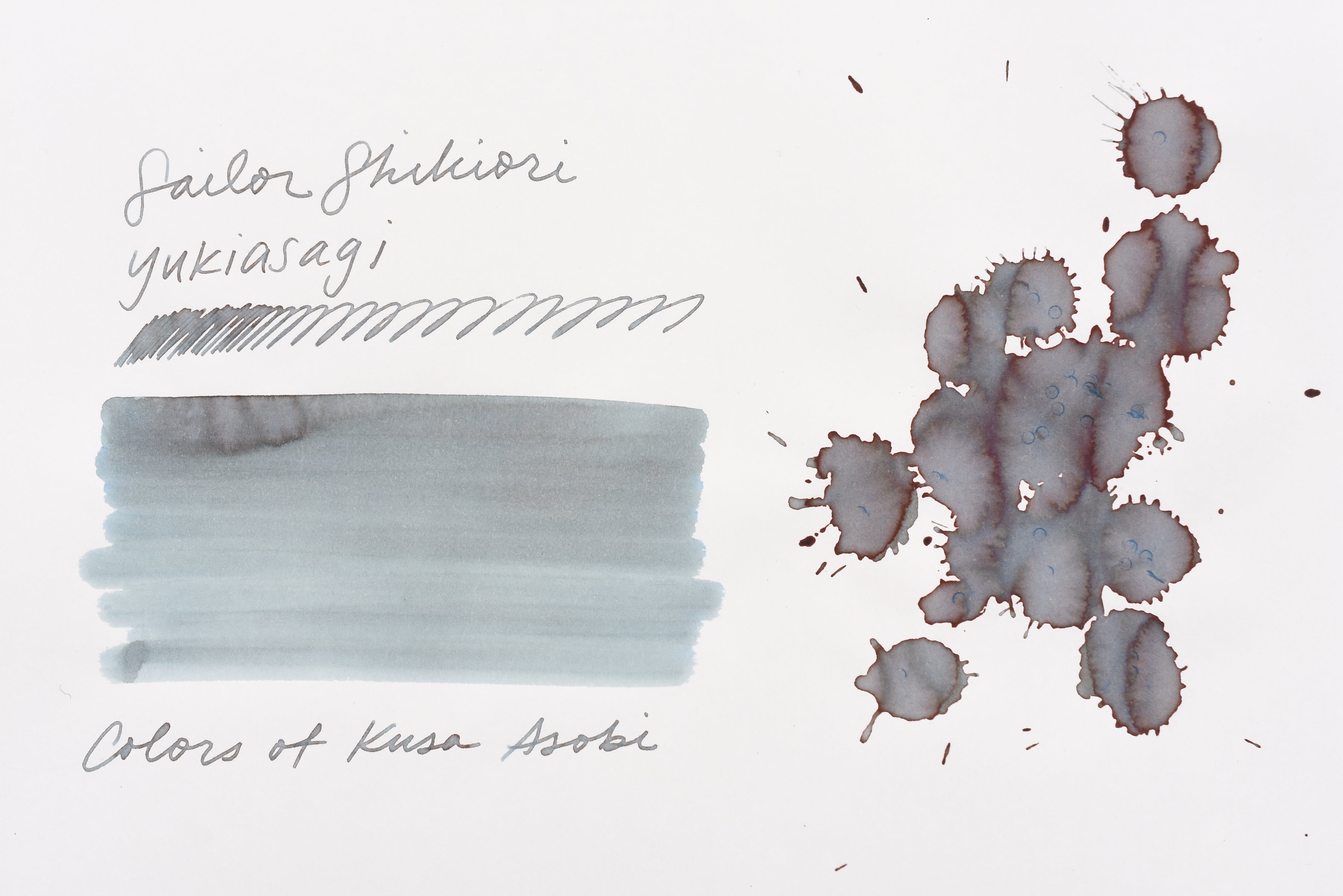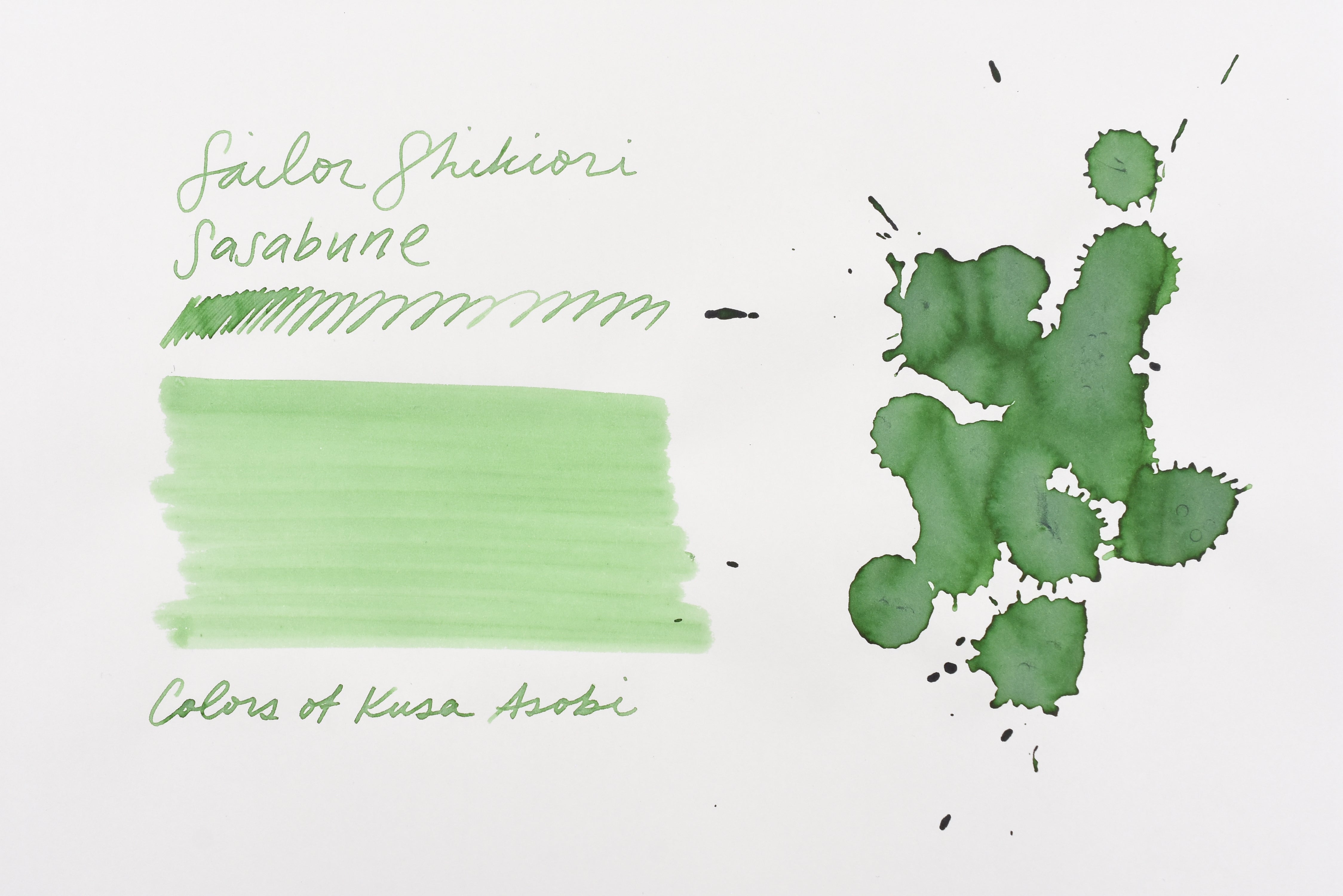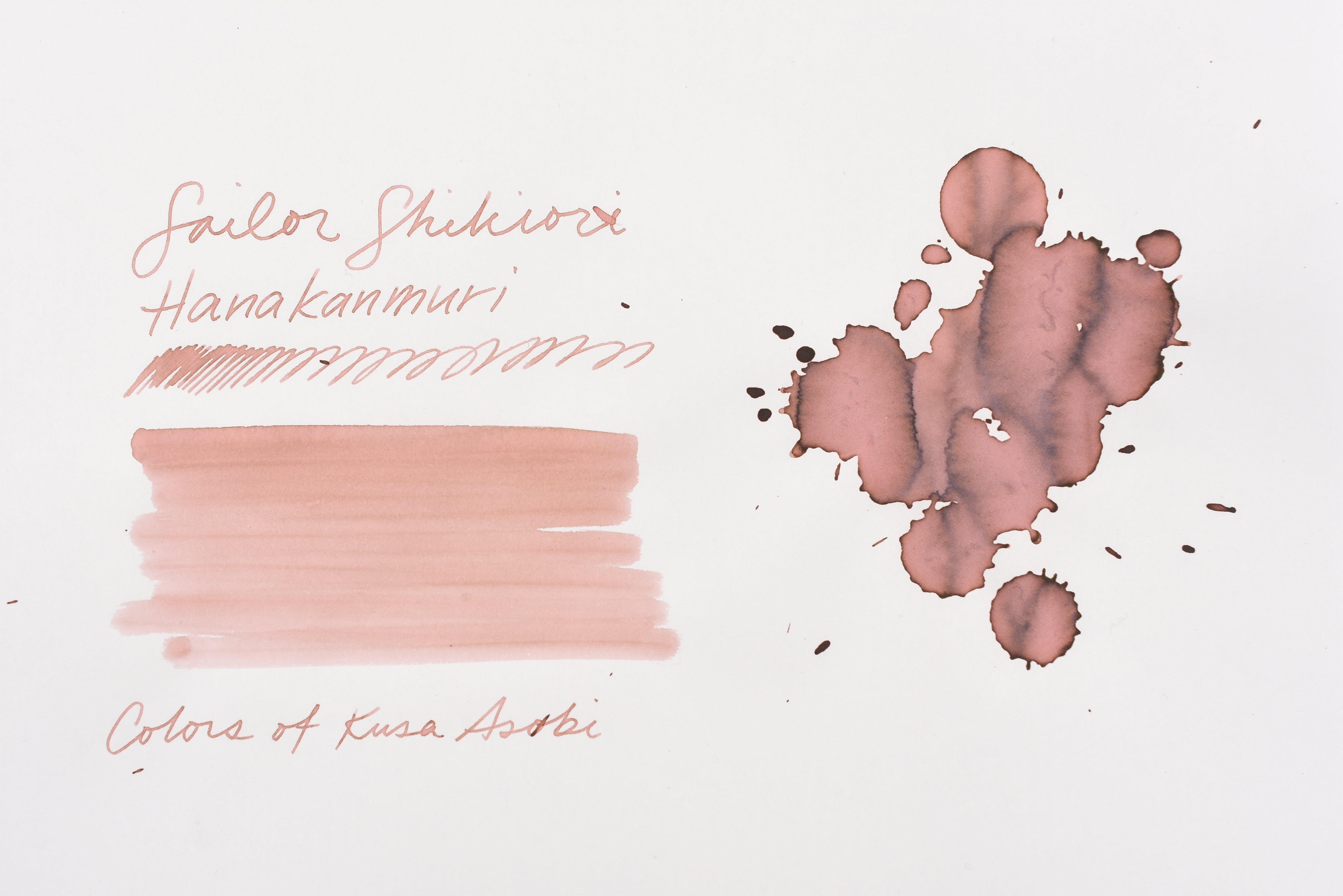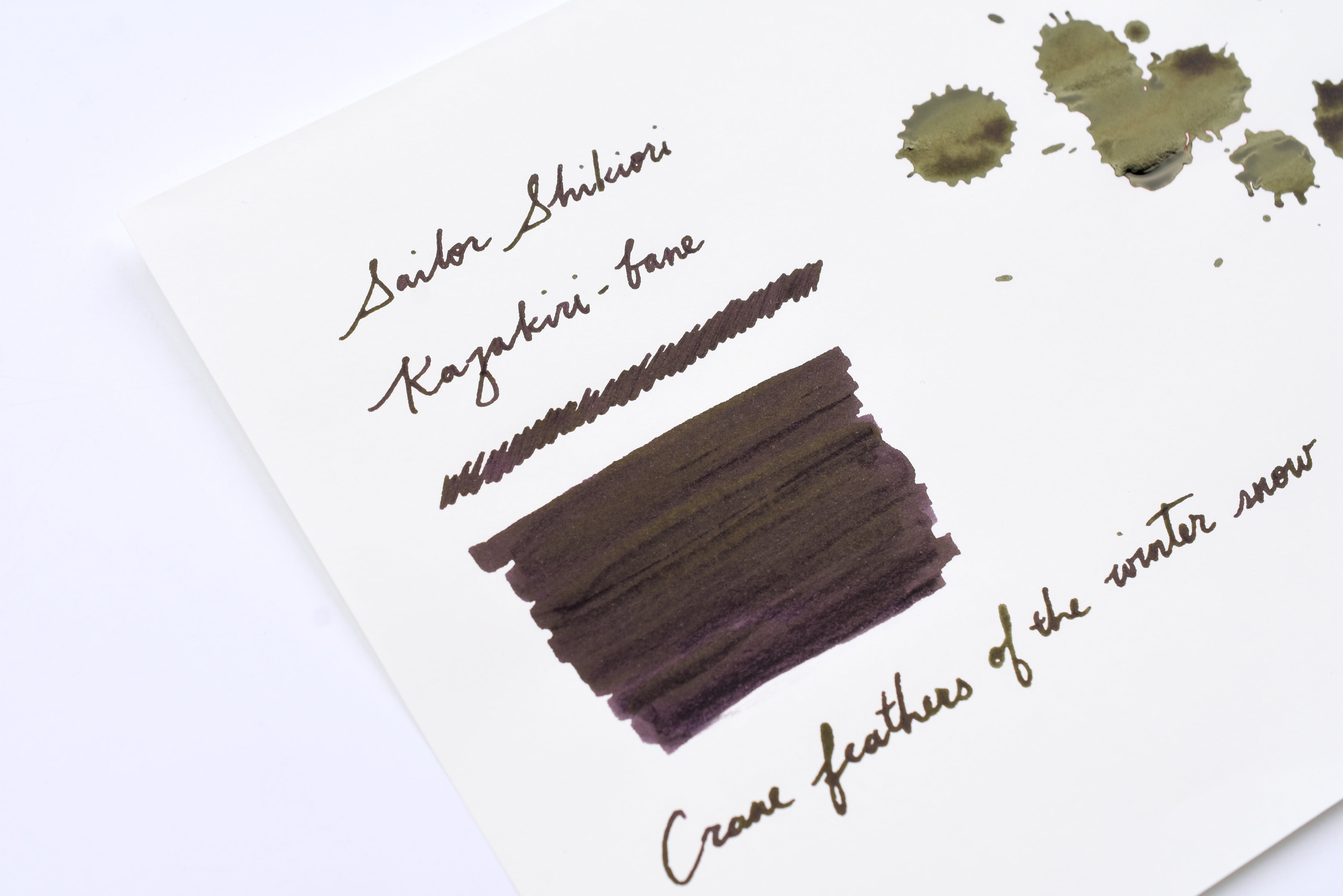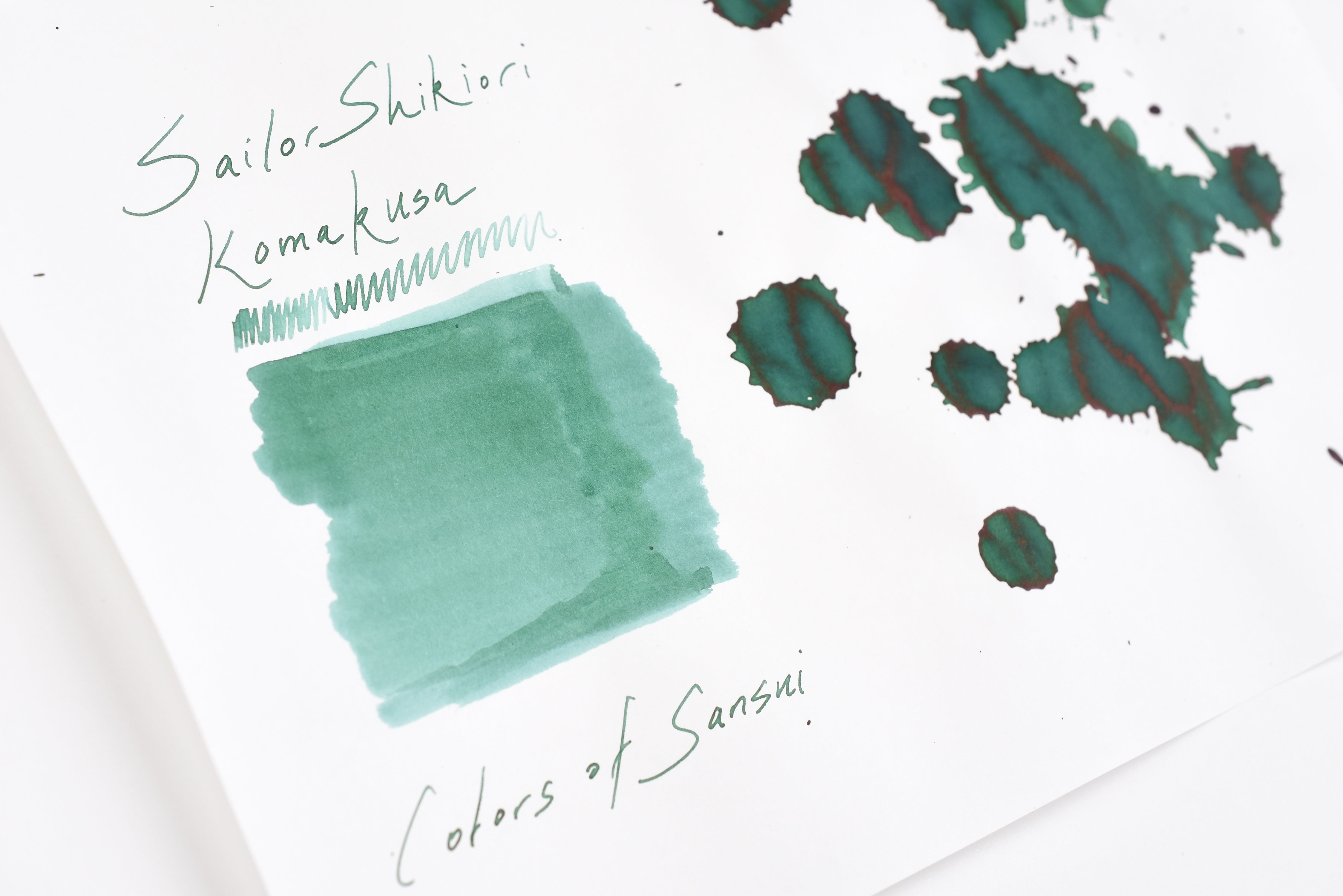 comes in a cute little container. it has more shading than the swatch and a small amount of red sheen, but other than that the swatch is pretty accurate. it looks pretty good even in thin nibs. flow is good, it's not too wet and not too dry.