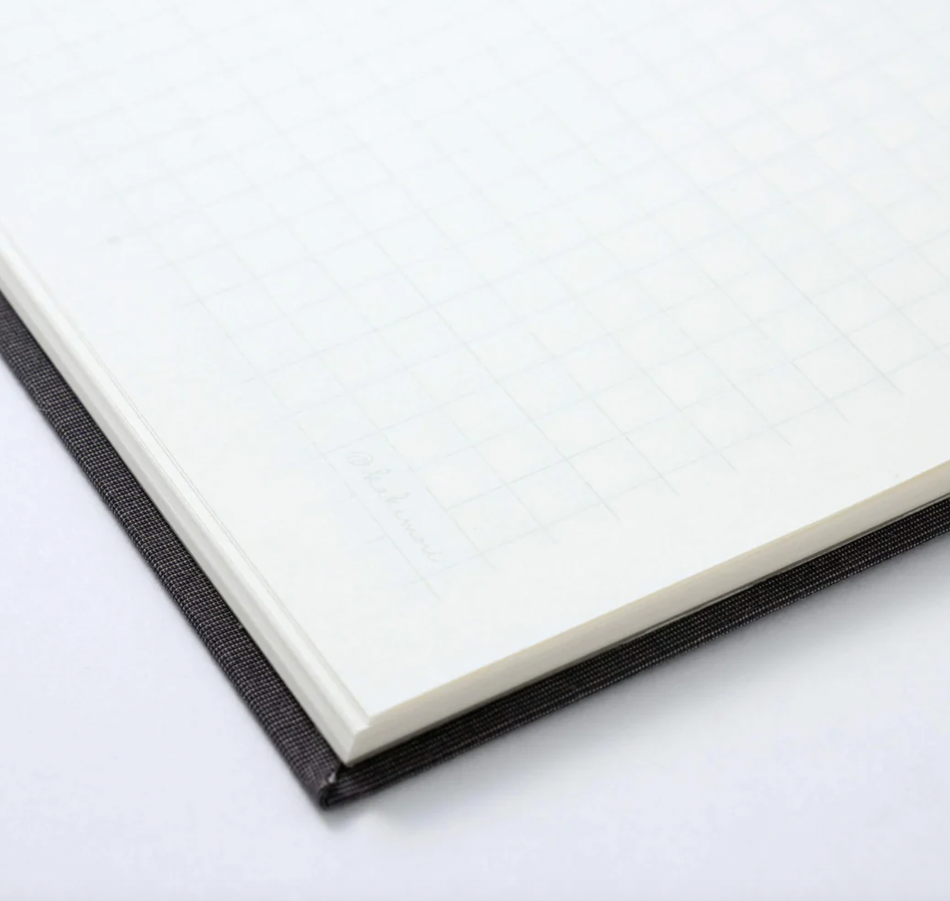 The Smyth sewn binding ensures each page opens perfectly flat to an A4 spread. The pages feature a hand-drawn, light grey grid that is gentle on the eyes and doesn't stand out when scanned. Kakimori created this notebook to be the kind that fits on a bookshelf and becomes part of a treasured collection over time.