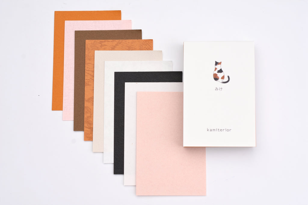 The newest Memoterior Mini Memo Pad - Cat series are collections of memo paper inspired by different coat types of cats. You can find adorable colors on the edge of these memo pads that represent five cat coat patterns. There are even pink layers in each memo pad that symbolize the inner ear and cat paws. Ten kinds of individual paper textures(and colors) are included in each set, with 10 sheets per texture and 100 sheets in total. A cute illustration is also displayed on the cover for visual reference of the inspiration. This memo pad is perfect for crafting, scrapbooking, making cards and great for anyone who enjoys experimenting with different types of paper.