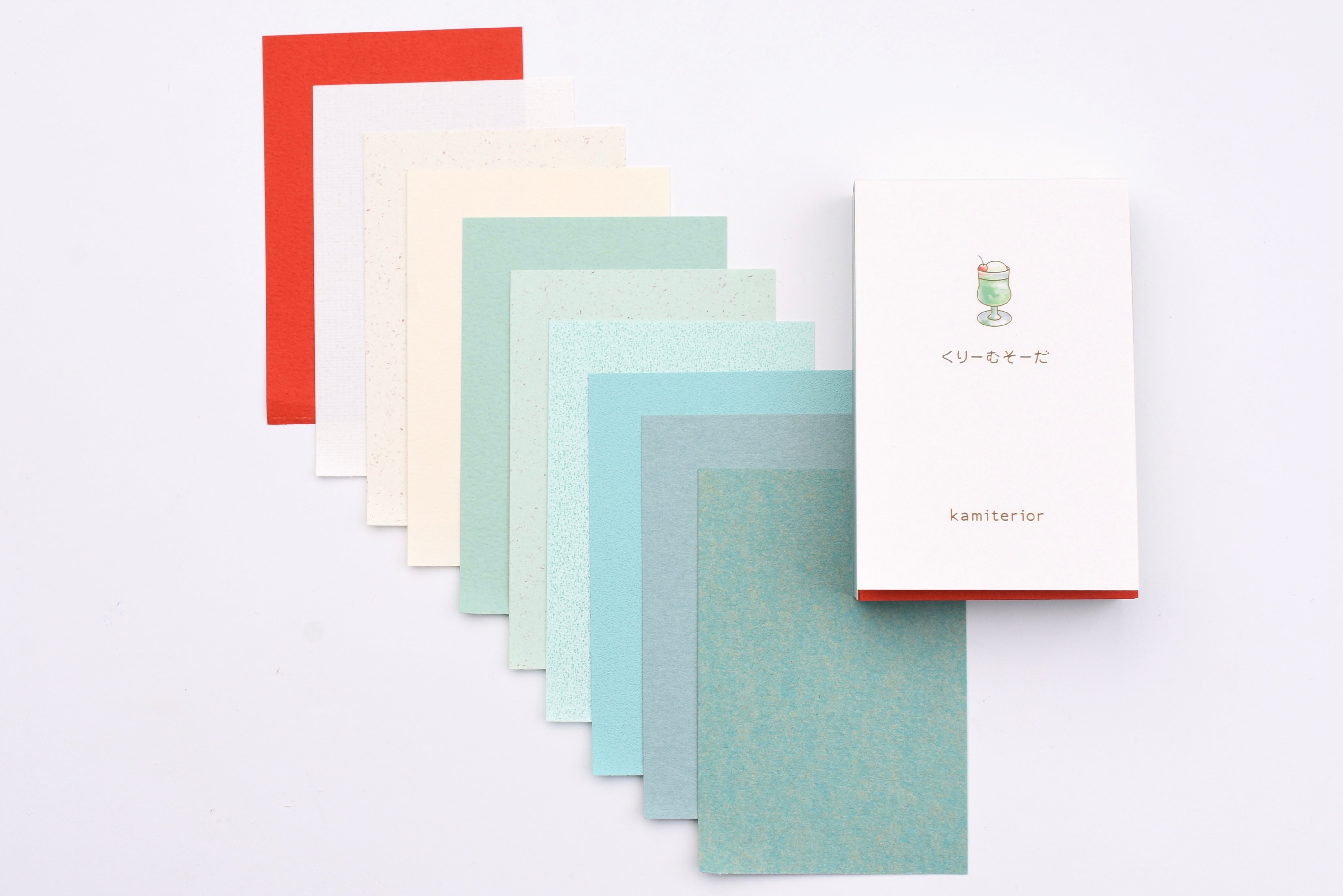 The newest Memoterior Mini Memo Pad - Dessert series are collections of memo paper inspired by popular desserts in Japan. You can find adorable colors on the edge of these memo pads that represent sweets like fruit sandwich or cream soda. These patterns also resemble the layers you can find on desserts when they are sliced in half. Ten kinds of individual paper textures(and colors) are included in each set, with 10 sheets per texture and 100 sheets in total. A cute illustration is also displayed on the cover for visual reference of the inspiration. This memo pad is perfect for crafting, scrapbooking, making cards and great for anyone who enjoys experimenting with different types of paper.