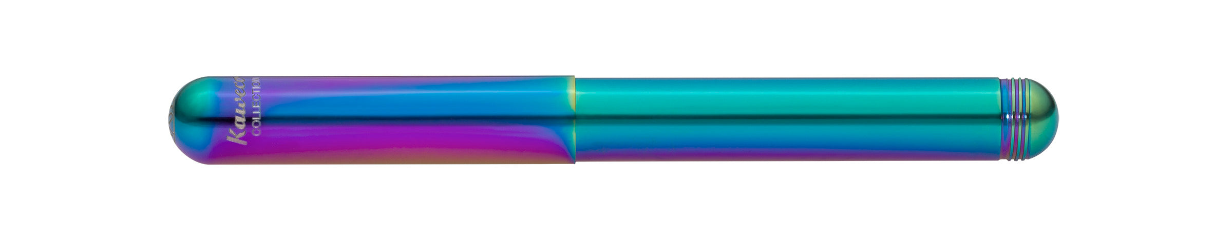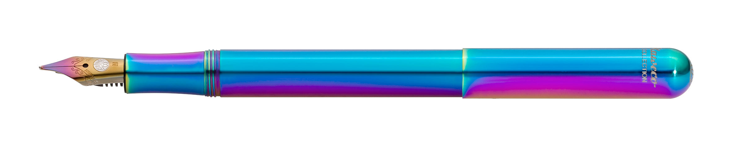 The Kaweco Liliput series showcases finely crafted pocket fountain pens, recognized as one of the smallest in the world. The Kolibri, the word for Hummingbird in German, is the newest in the lineup, featuring a stainless-steel body with an iridescent finish inspired by Hummingbird feathers. As the Hummingbird is one of the smallest birds in the world, this inspiration complements the Liliput's small size nicely. The iridescent wing-color effect is achieved through PVD-plating, resulting in unique, multicolored patterns for each pen.