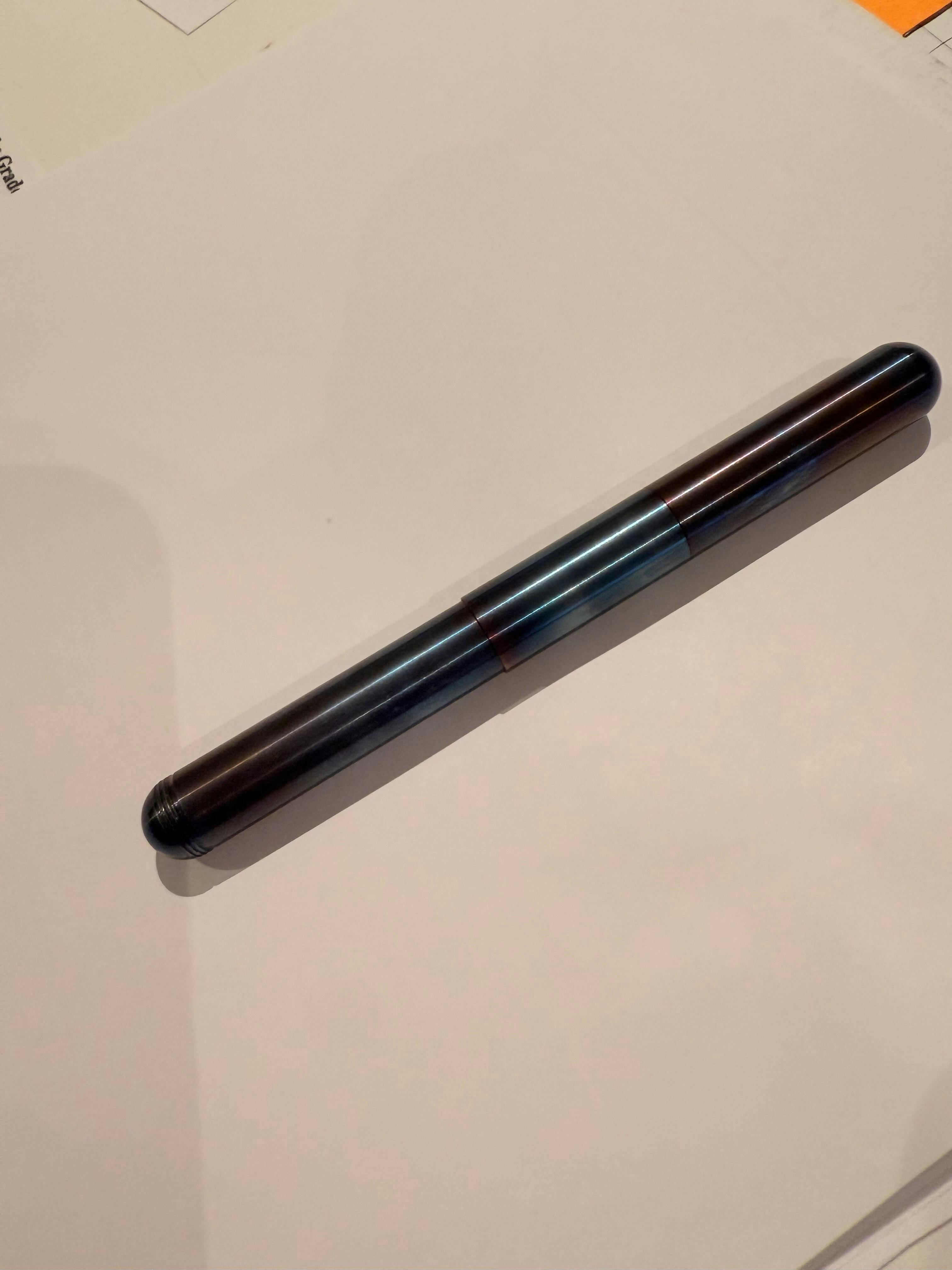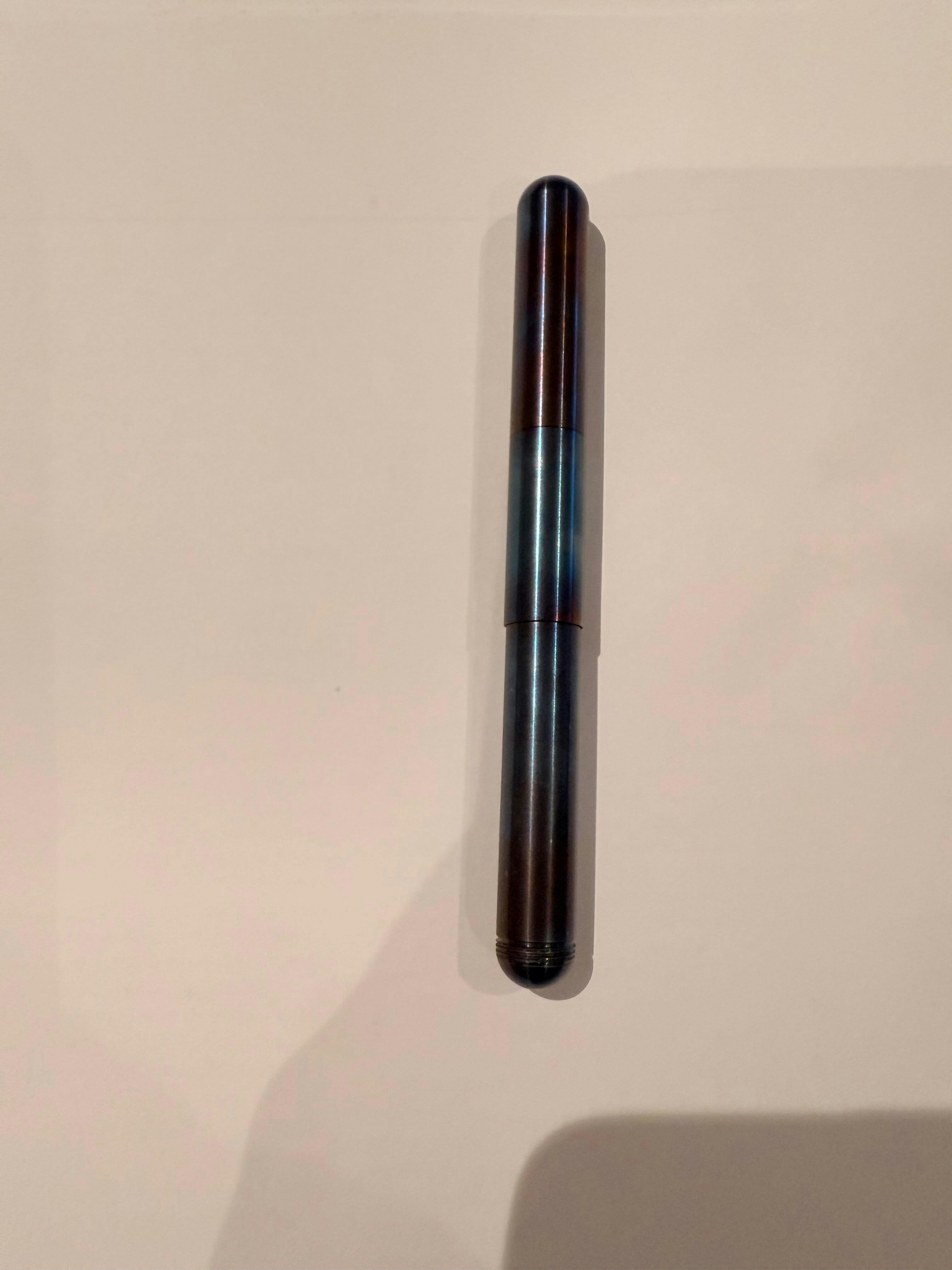 The body feel is nice and the length is fine after the cap is on the end. The colors are definitely not the same as what the photo shows though. I know each one is unique and may not match exactly, but the colors are so dark and muted with only browns and dark grayish blues. None of the purples or vibrant blues can be seen. Maybe the oils from my hands will change it over time but at the moment it does not look like I am staring into the galaxy. More like I’m looking into the black hole.