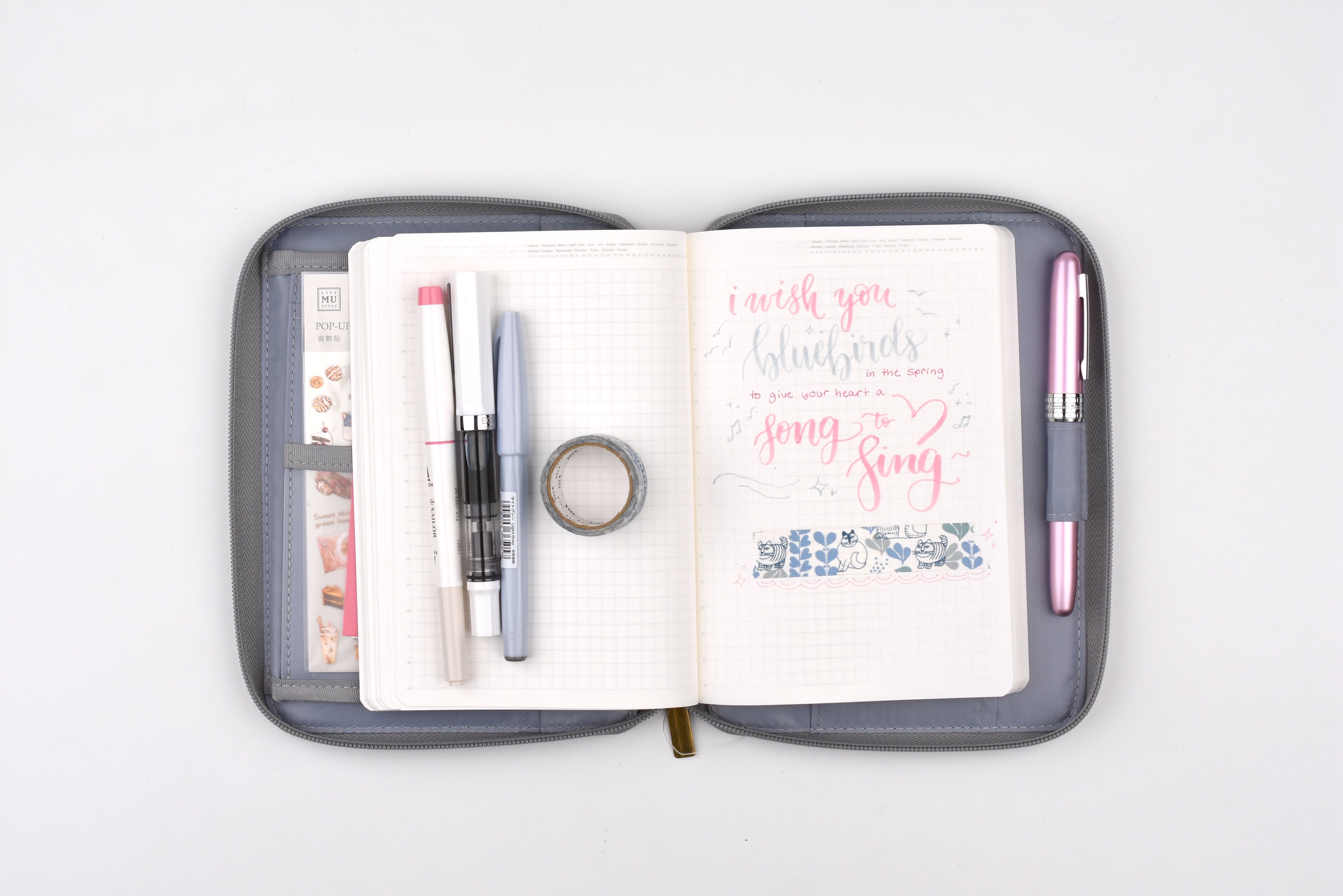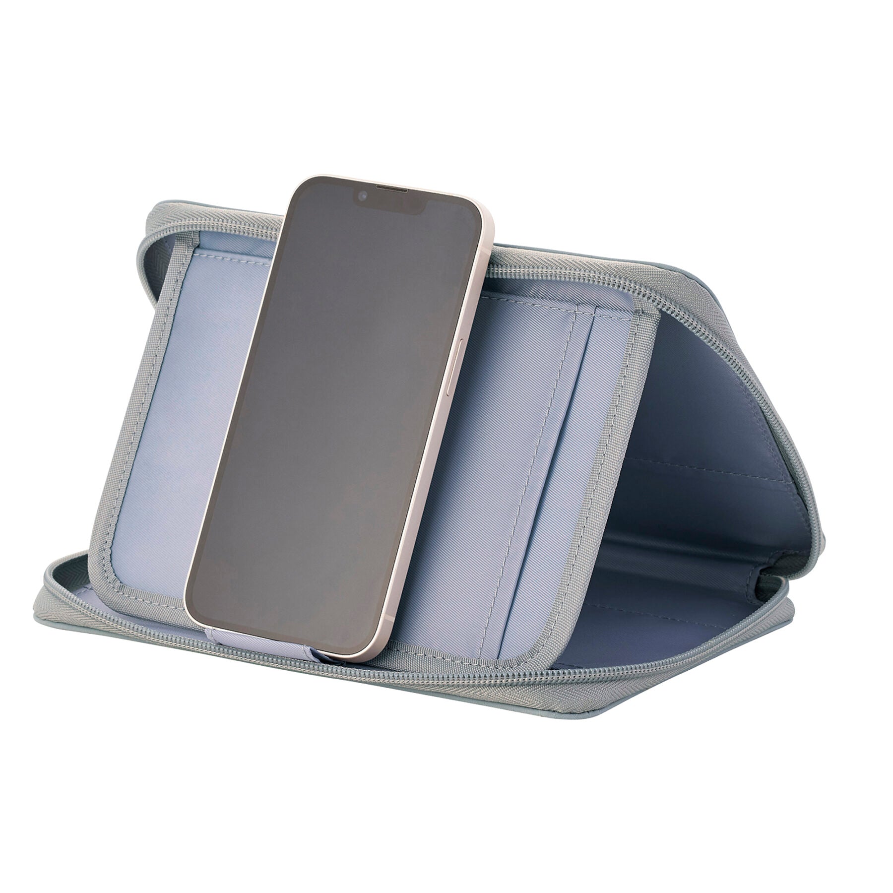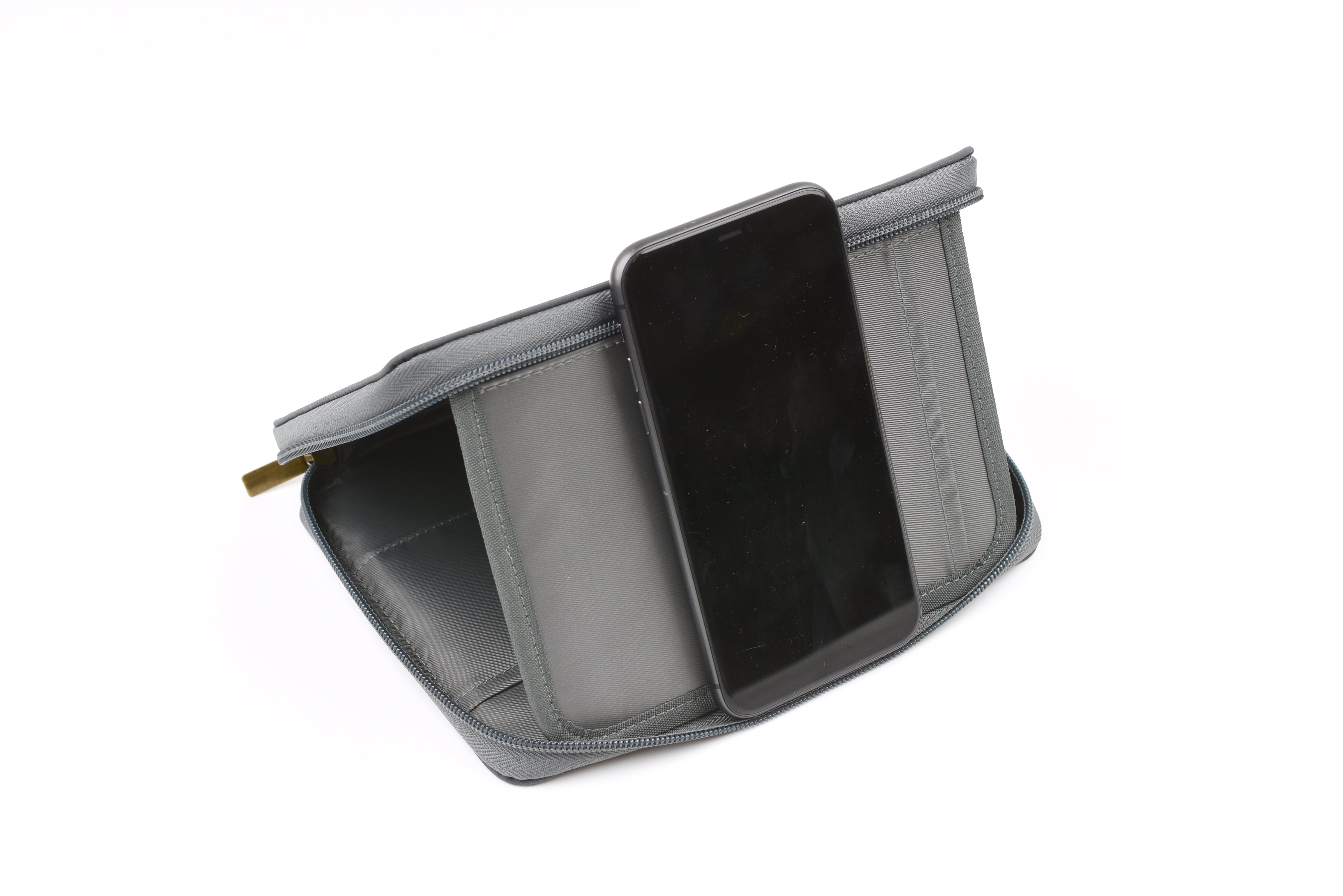 This multifunctional case features flexible, water-repellent fabric paired with multiple functional pockets and a sturdy, structured build. Its impressive storage capacity allows you to carry notebooks, planners, and everyday desk essentials with ease. The flap can also be flipped up to serve as a convenient smartphone stand for added functionality.