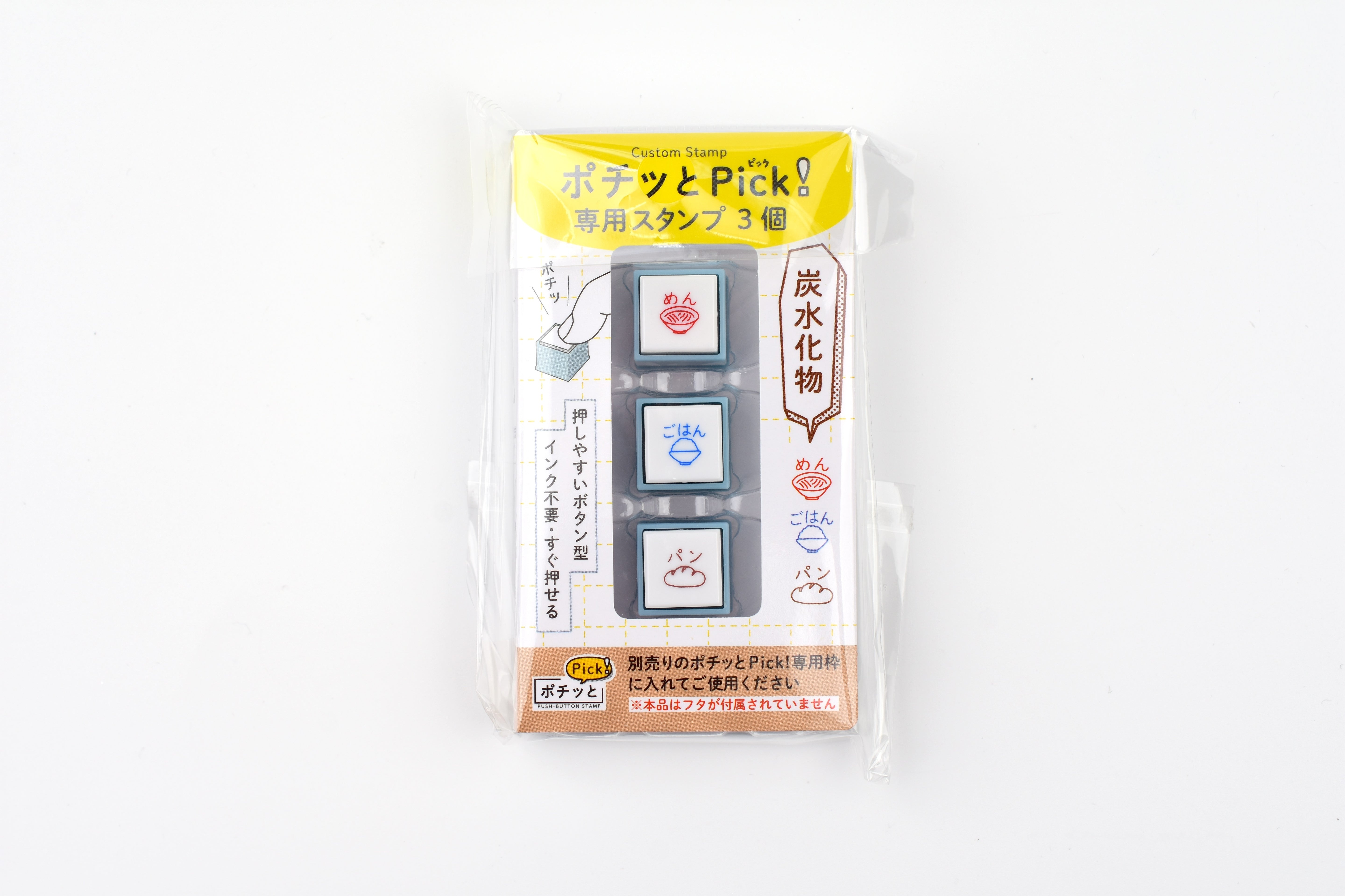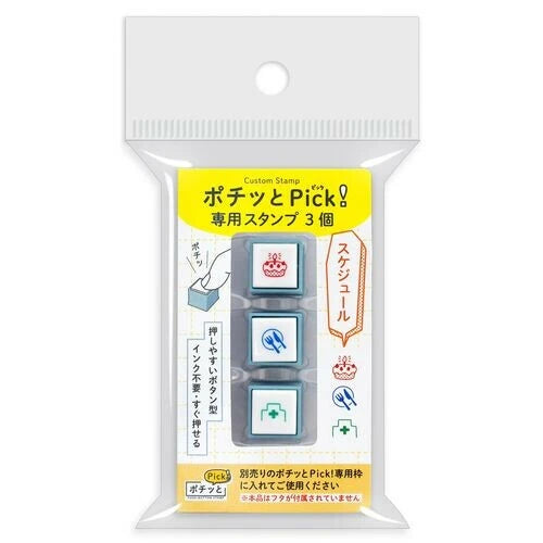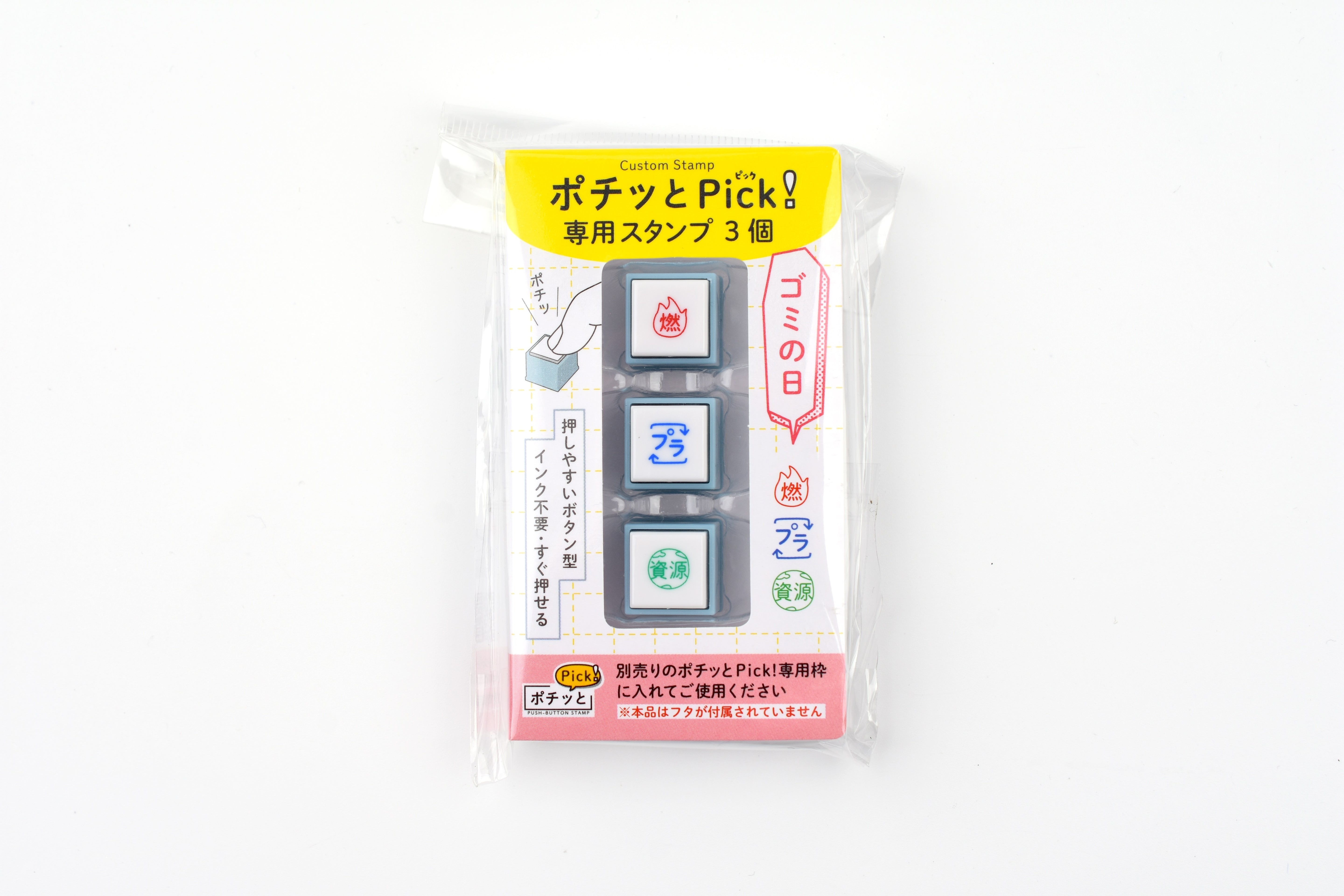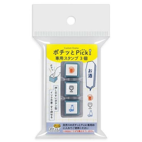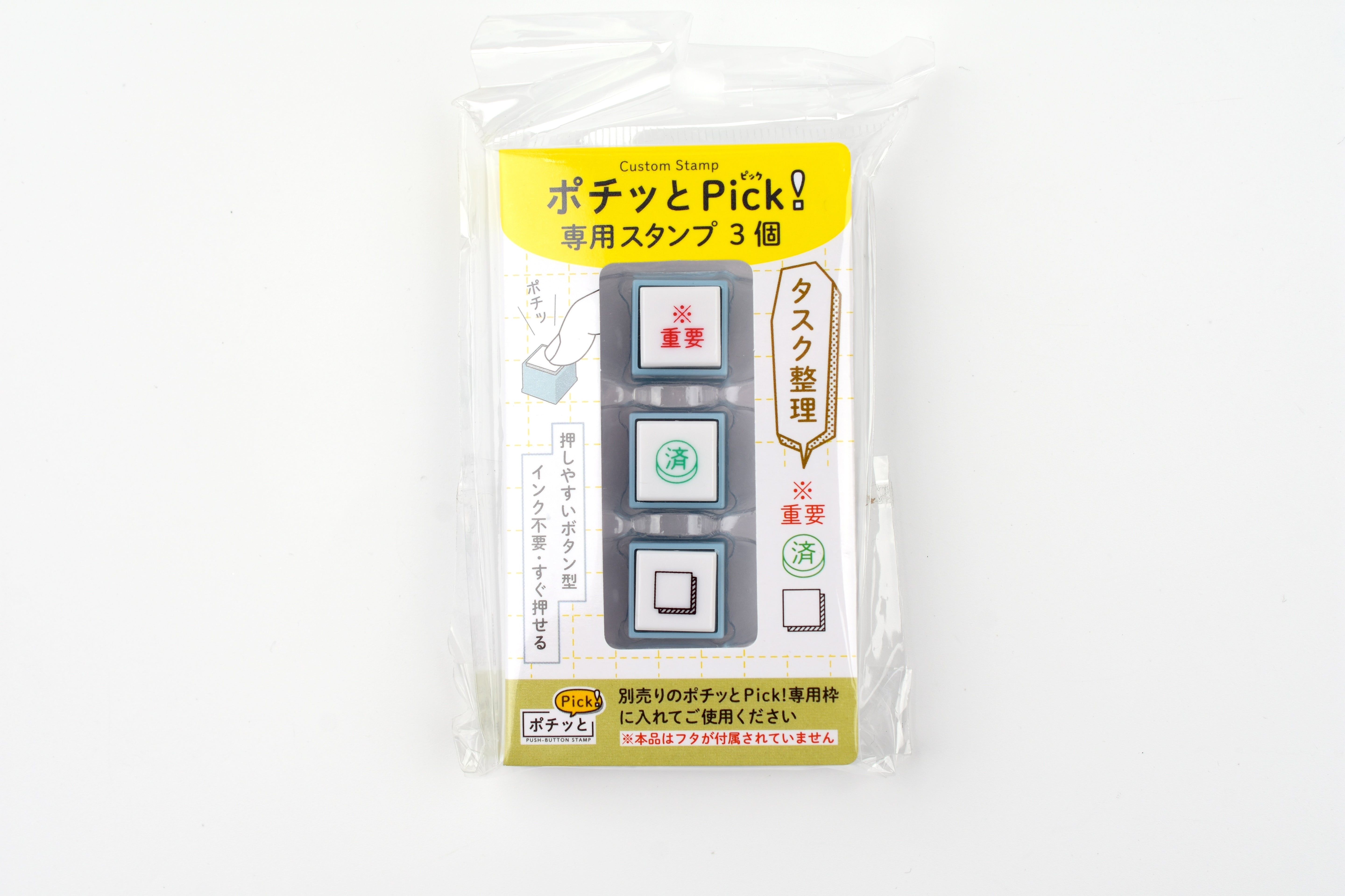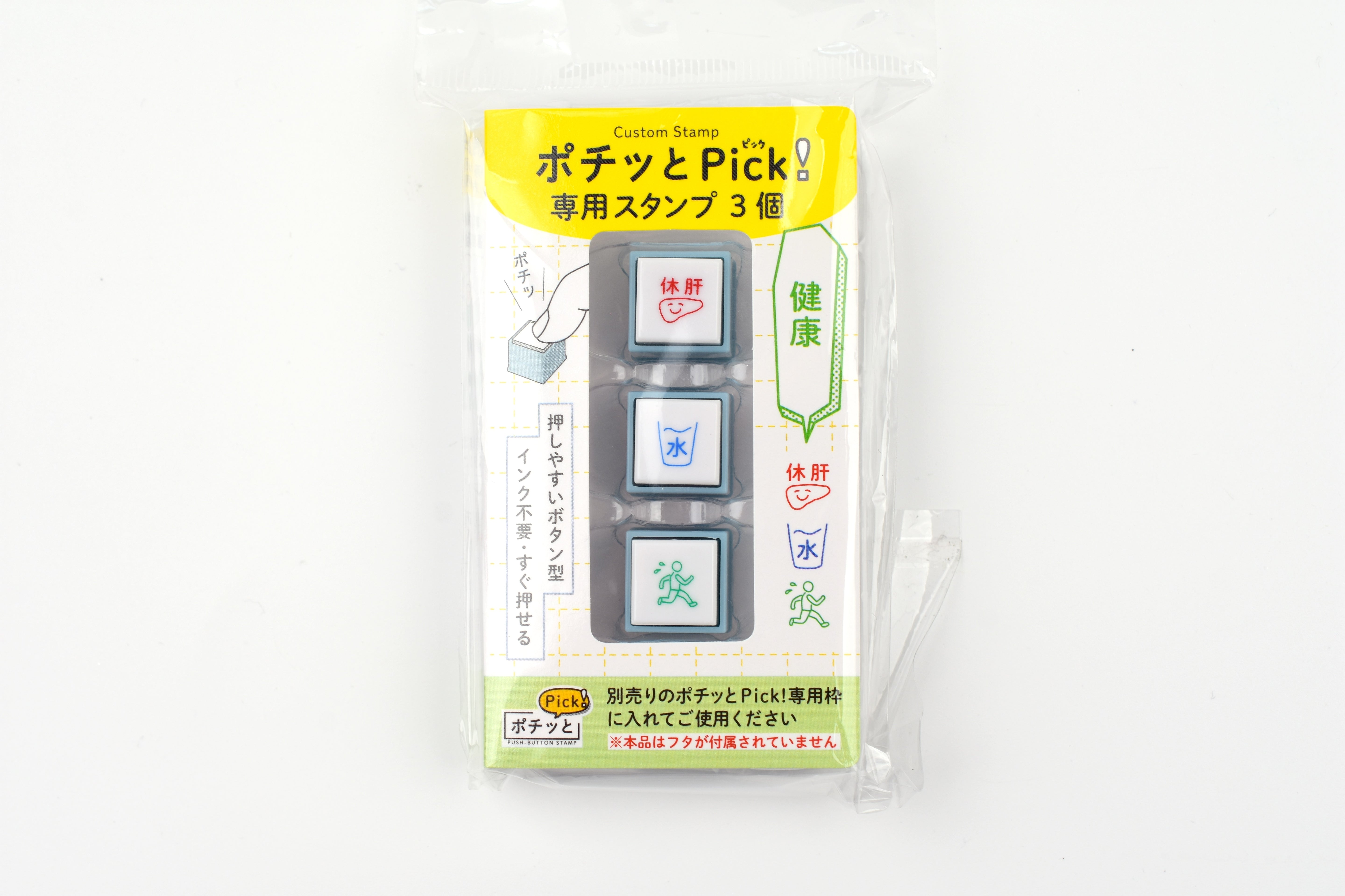 The Pochitto Pick! Push-button stamp now comes in a new format: a 3-pack of exclusive stamps and a separate exclusive frame (with case) that holds up to six stamps. These self-inking stamps can be pressed like a button to apply designs easily and cleanly to paper.