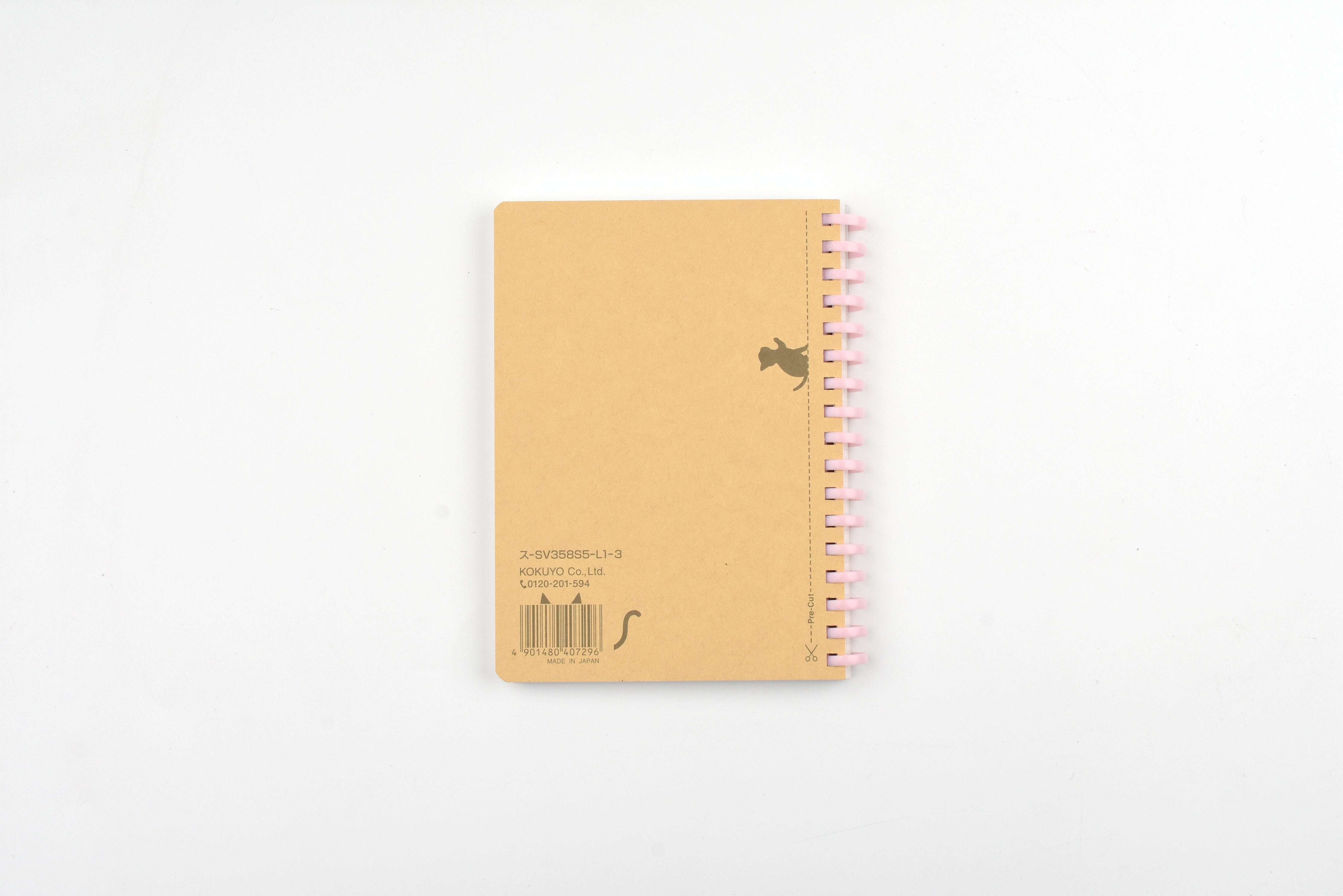 The 5mm grid pages and back cover are decorated with adorable kitten illustrations. The D-shaped ring keeps the ring width compact and avoids the typical bulkiness of ring notebooks. It folds back flat for convenient writing and allows you to write beautifully to the edge without worrying about your hand hitting the ring when writing. Each page is micro-perforated for clean and easy tear-out.
