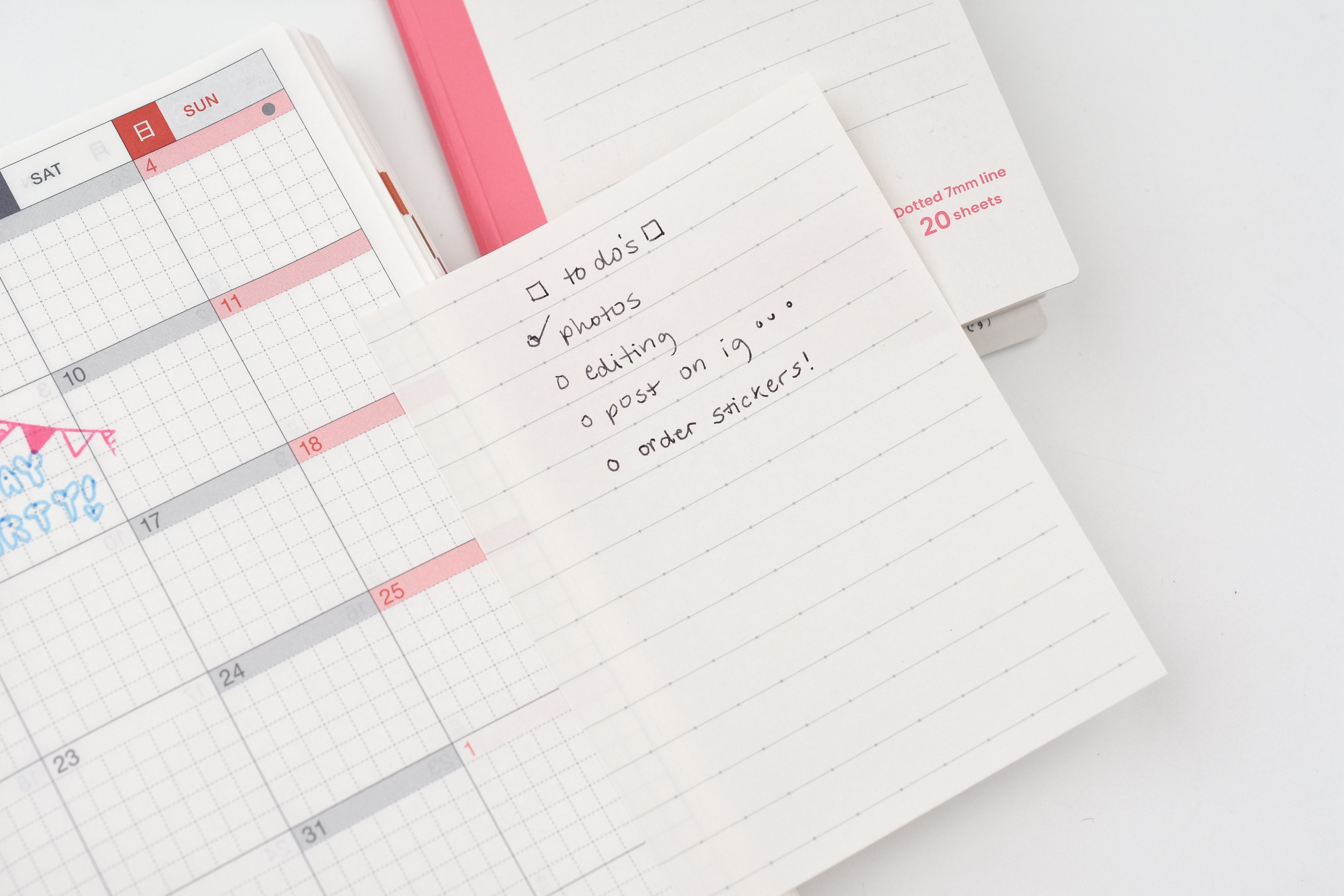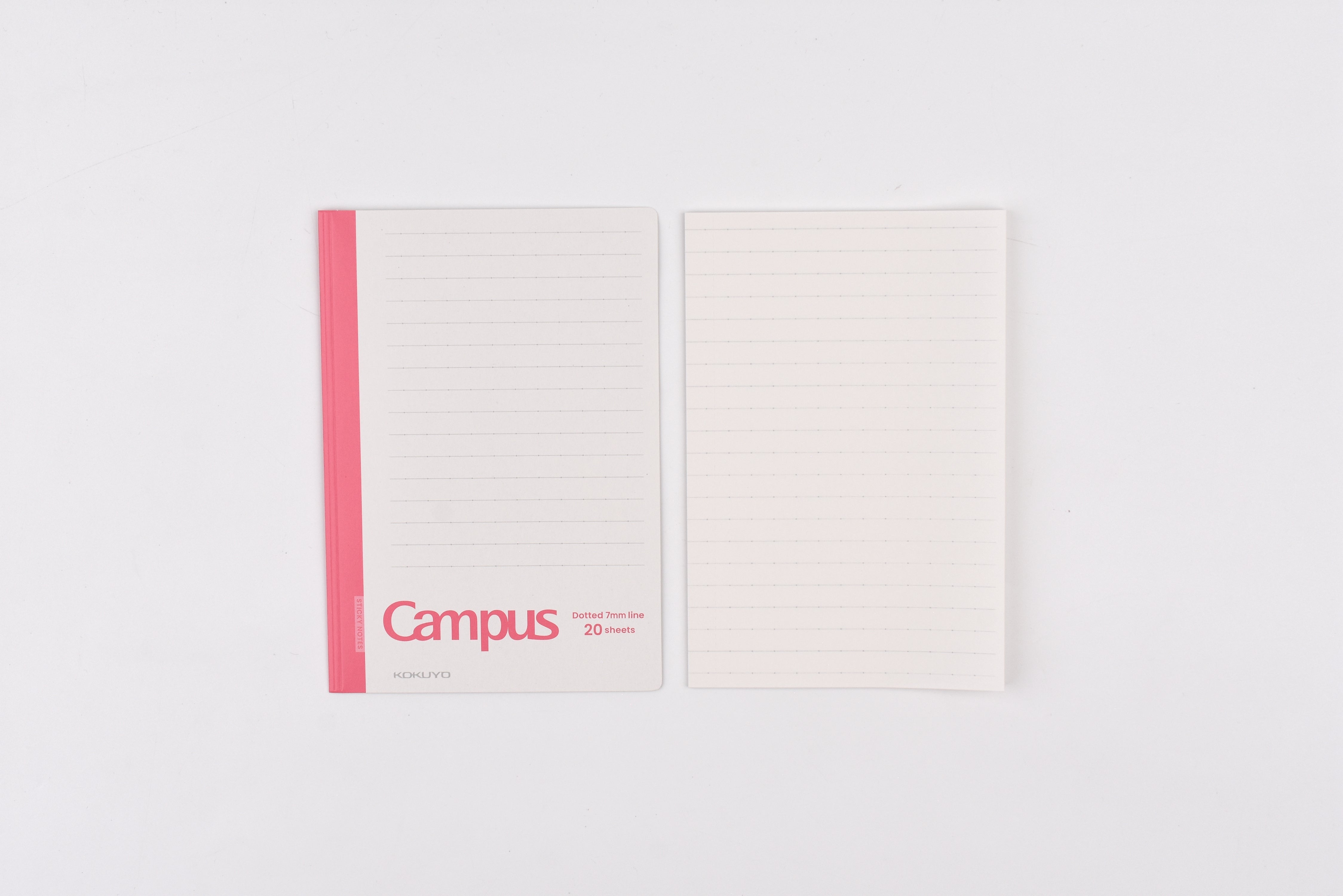 - Pink: 13 lines per sheet; 7mm ruled (with dots)
