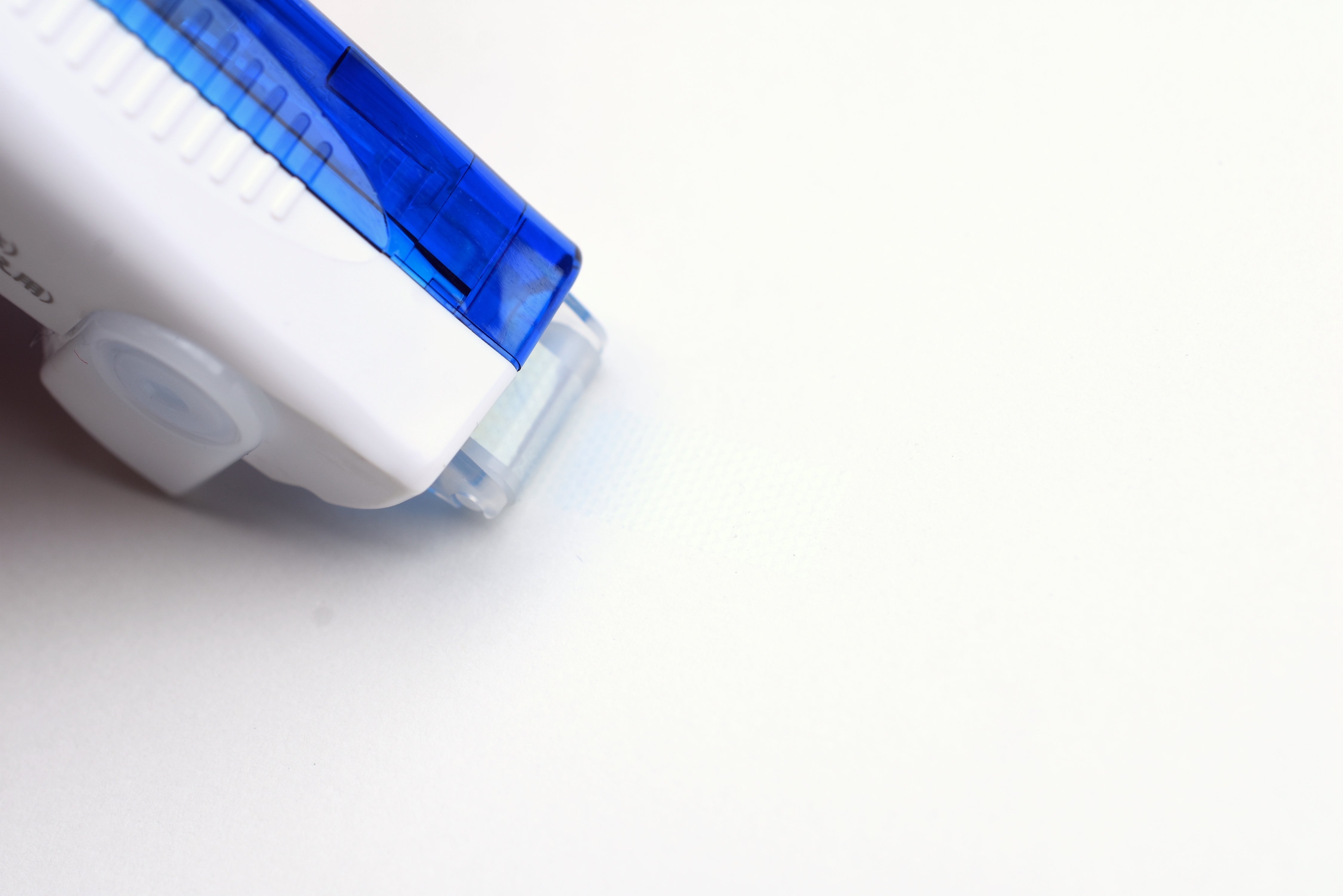 One of our favorite tools here at Yoseka is this KOKUYO Dotliner. This adhesive tape roller was released in 2005 by Kokuyo and is perfect for journaling, scrapbooking, and even sealing envelopes. As you press the applicator against paper, double-sided tape rolls out and sticks to the surface. If you look closely, you'll see that the strip of glue is composed of tiny dots with spaces in between. This arrangement makes it easy to dispense the tape without it sticking to itself, and also prevents the paper from wrinkling. The double-sided tape can also be removed with an eraser.