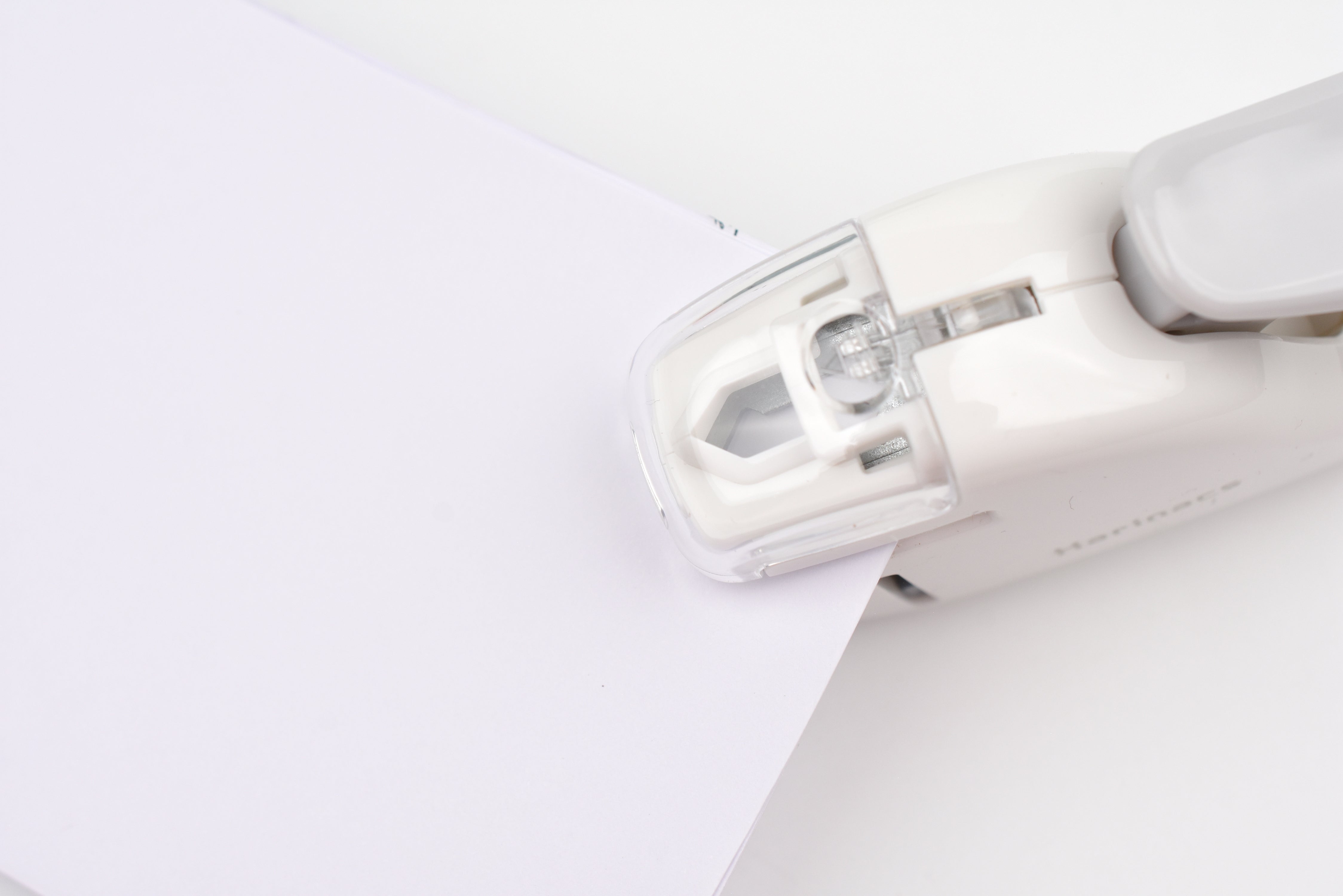 This palm-sized stapler offers an eco-friendly way to fasten papers without metal staples. Designed for convenience, it can staple up to 5 sheets at once using an arrow-shaped blade that securely tucks the paper together—no refills, no metal waste, and no need to separate pages when recycling. The new blade design makes operation about 20% lighter than before, while the clear viewing window ensures precise placement every time.