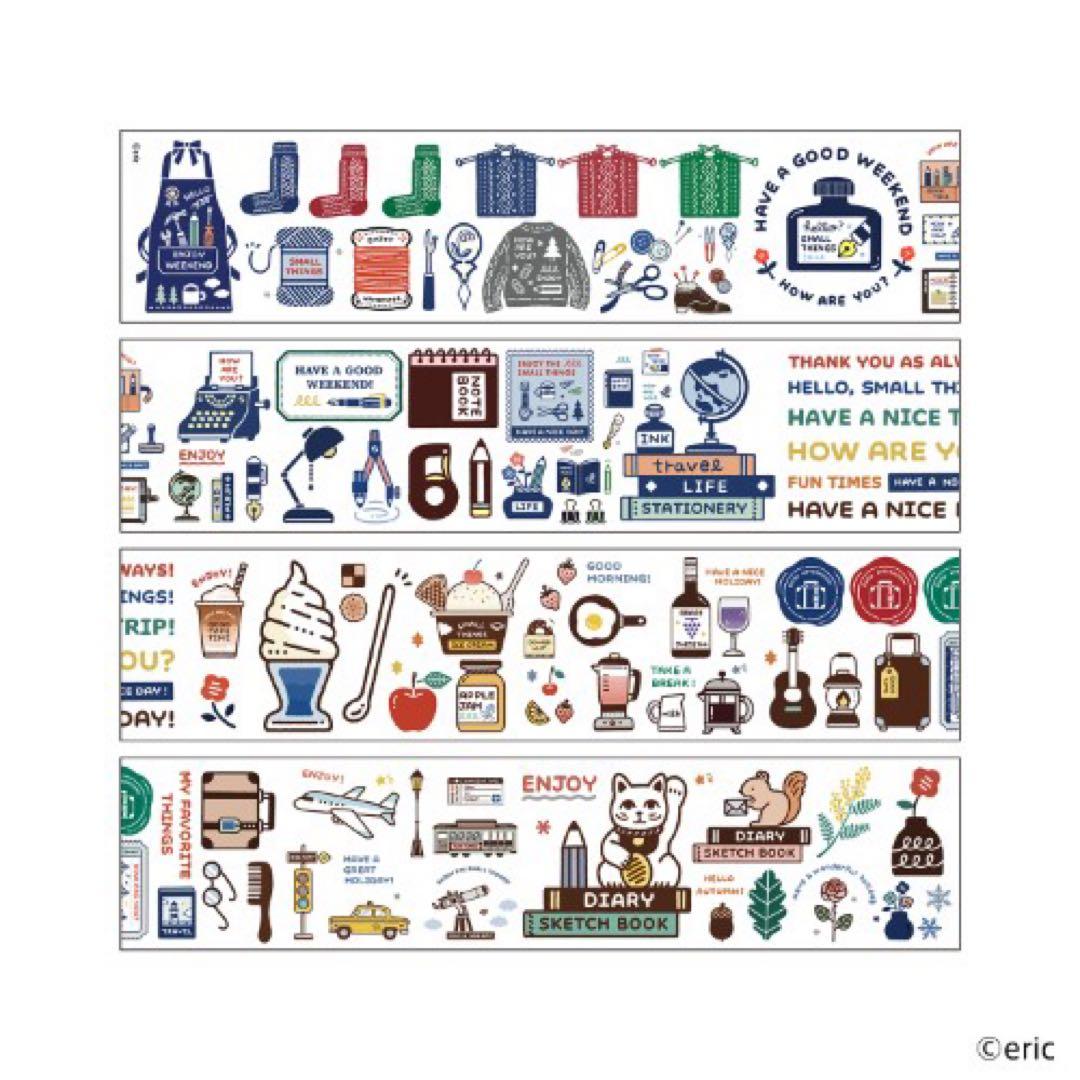 These clear roll stickers are part of Nippan’s Komamono Creative series, a collaboration line featuring artwork from a range of talented illustrators. Each roll presents a continuous arrangement of illustrations, capturing the distinct style and world of its creator through detailed, high-definition printing.
