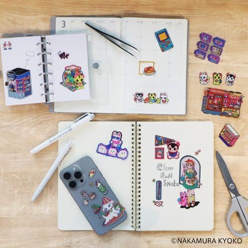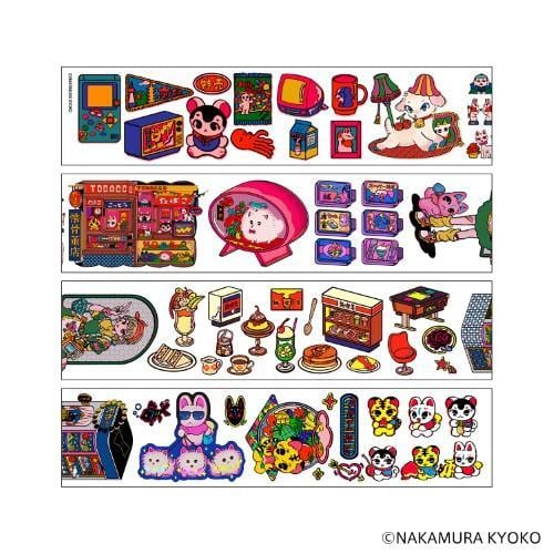 These clear roll stickers are part of Nippan’s Komamono Creative series, a collaboration line featuring artwork from a range of talented illustrators. Each roll presents a continuous arrangement of illustrations, capturing the distinct style and world of its creator through detailed, high-definition printing.