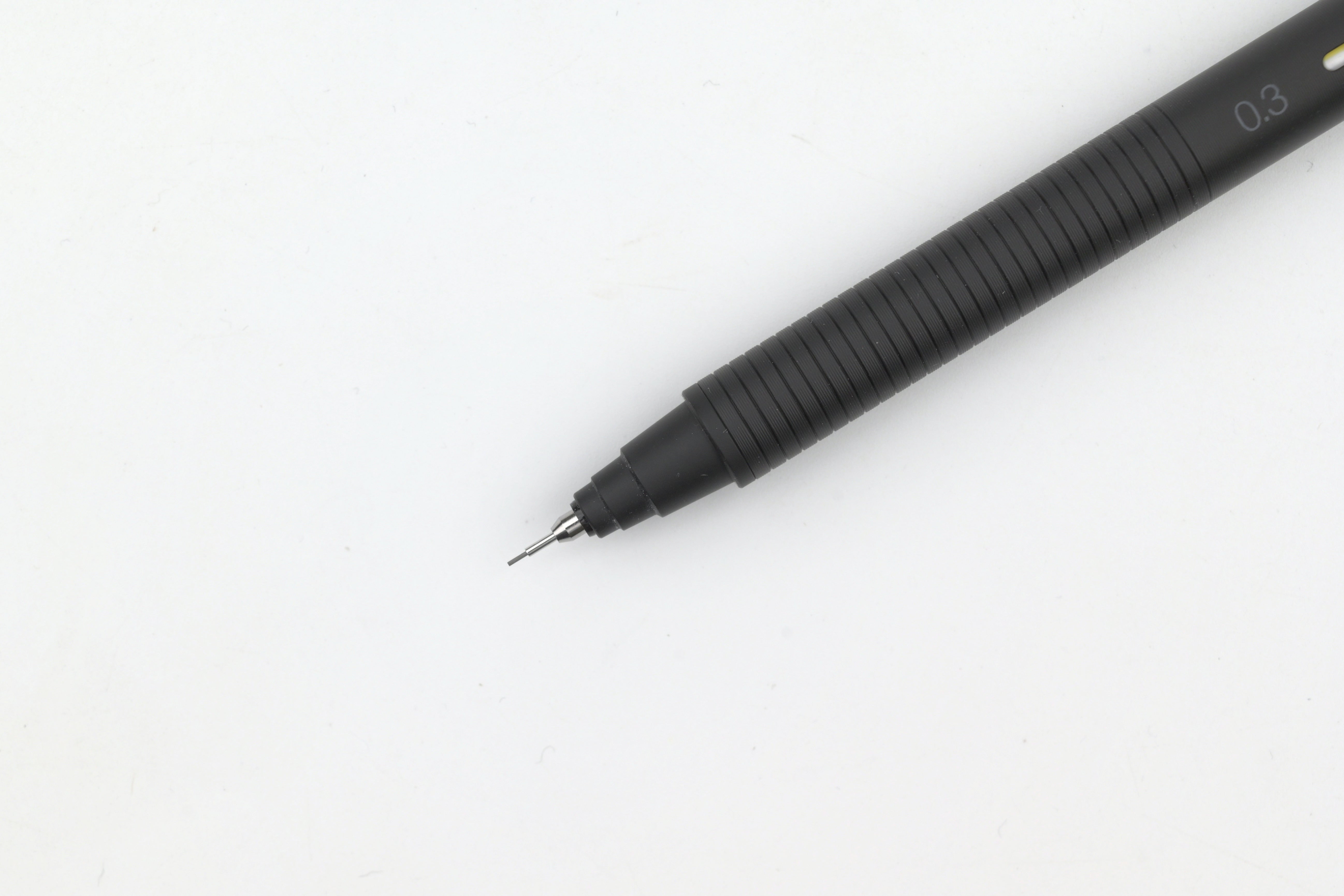 Designed for comfort and style, the pencil features a "mild edge grip" with a surface treatment that fits comfortably in the hand. Its grip is subtly textured with fine grooves, making it easy to hold while adding a sleek, stylish touch.