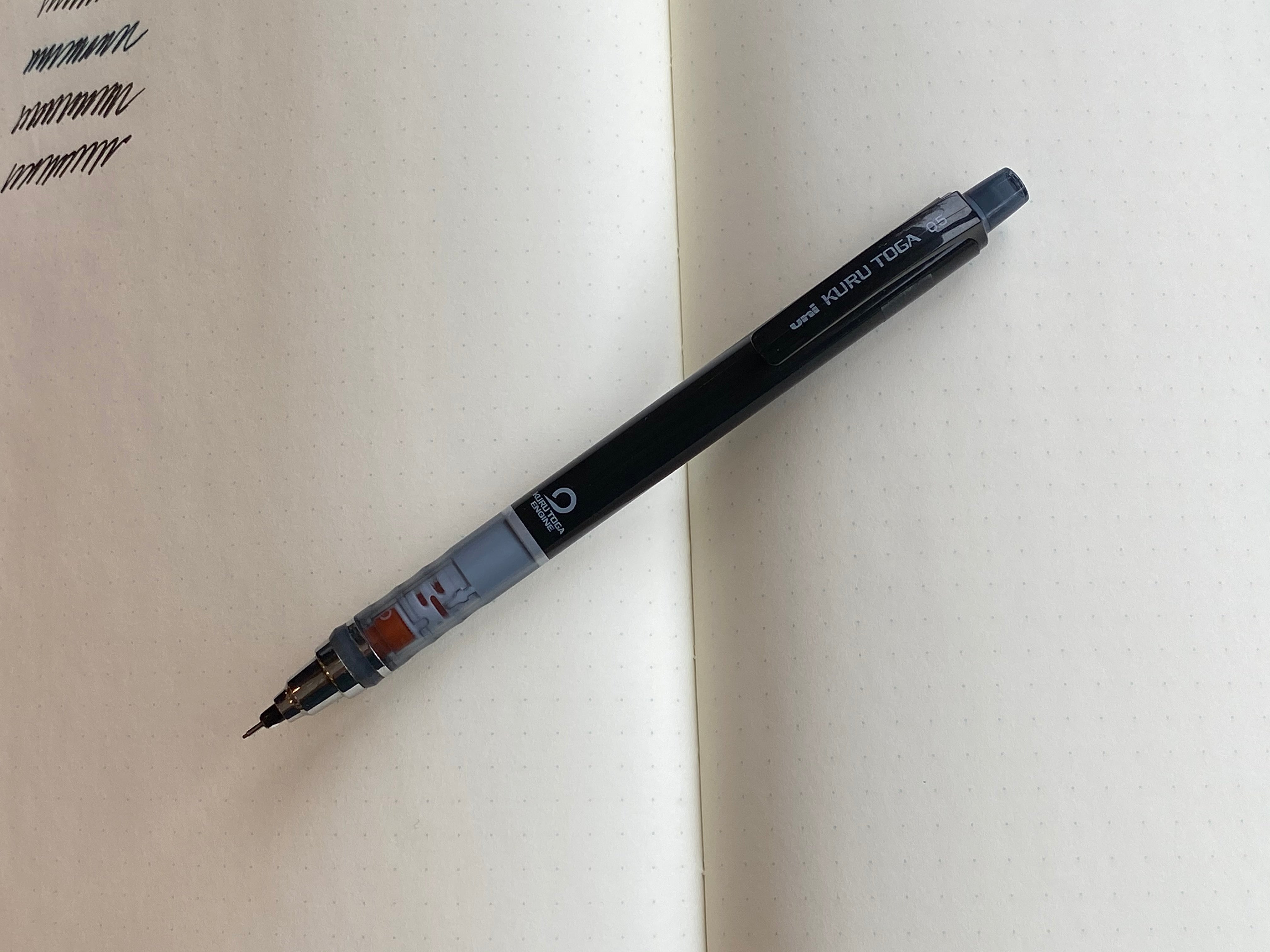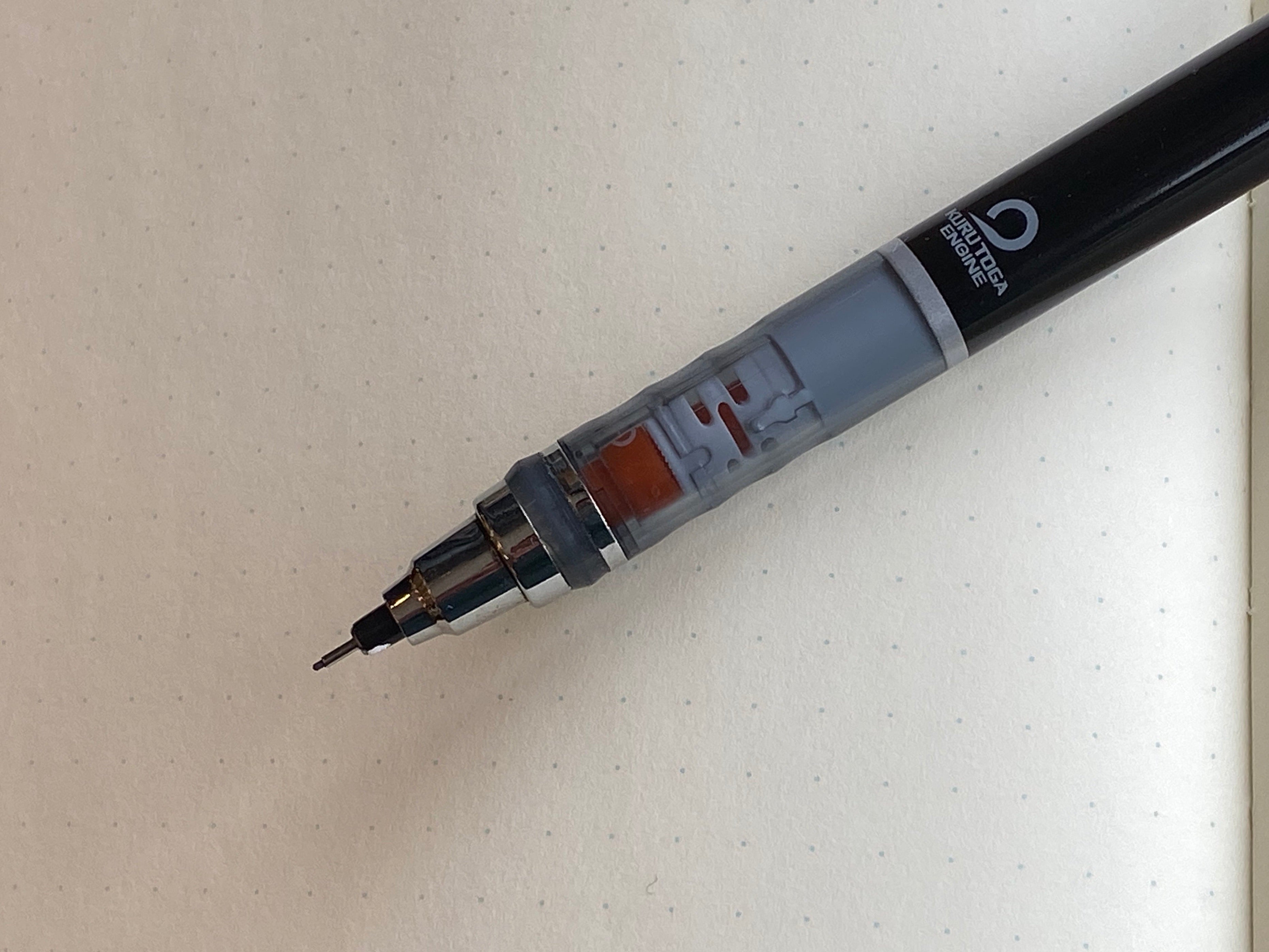 - Transparent window in the grip allows you to track the Kuru Toga icon as it rotates