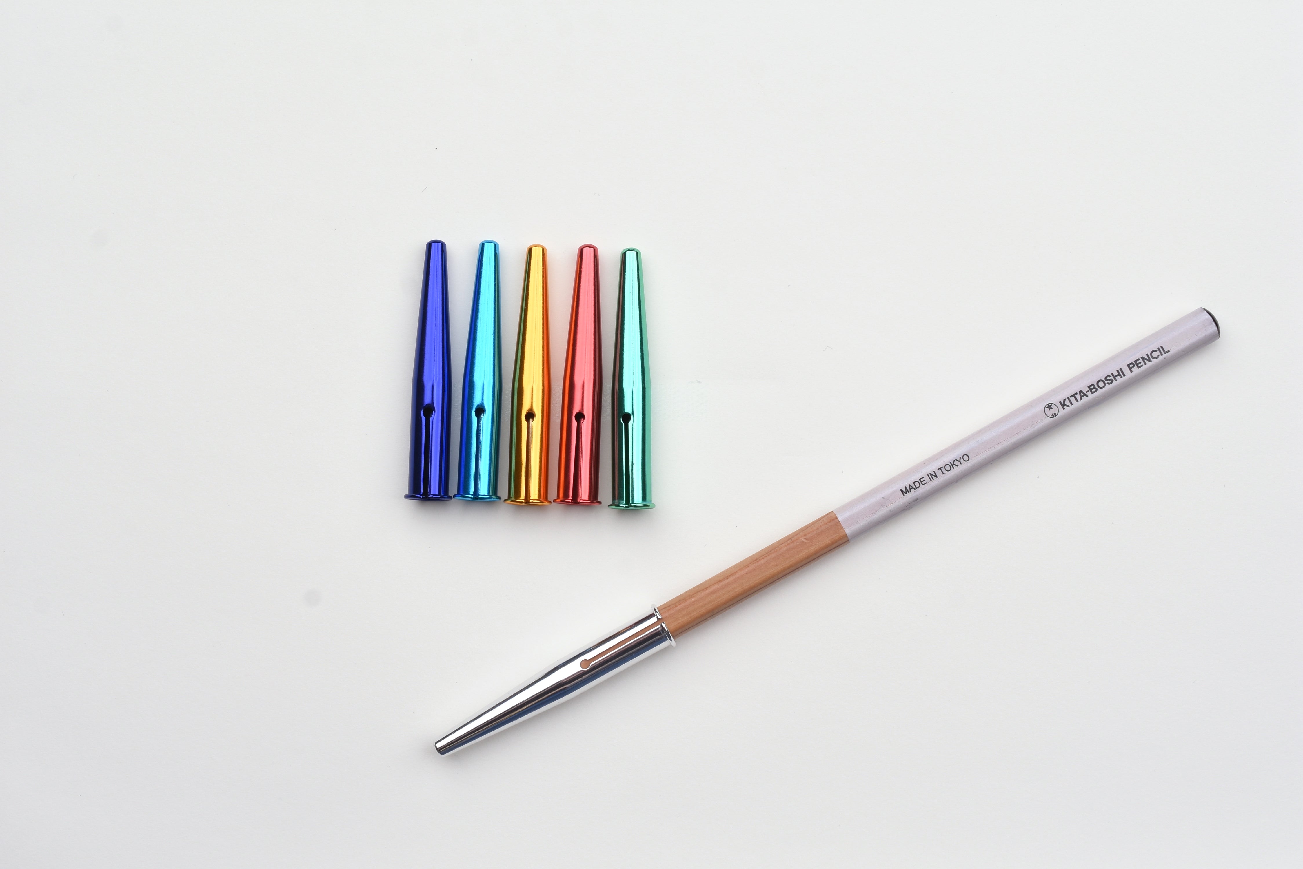 These light and durable aluminum pencil caps from Kutsuwa will protect your pencils inside your bags, pencil cases or pockets, as well as when your pencils roll off your desk. They will also prevent your pencils from leaving marks inside your bags or pencil cases. The cap can be posted while using the pencil, which will help lengthen some short pencils and give them balance. Label stickers are included.
