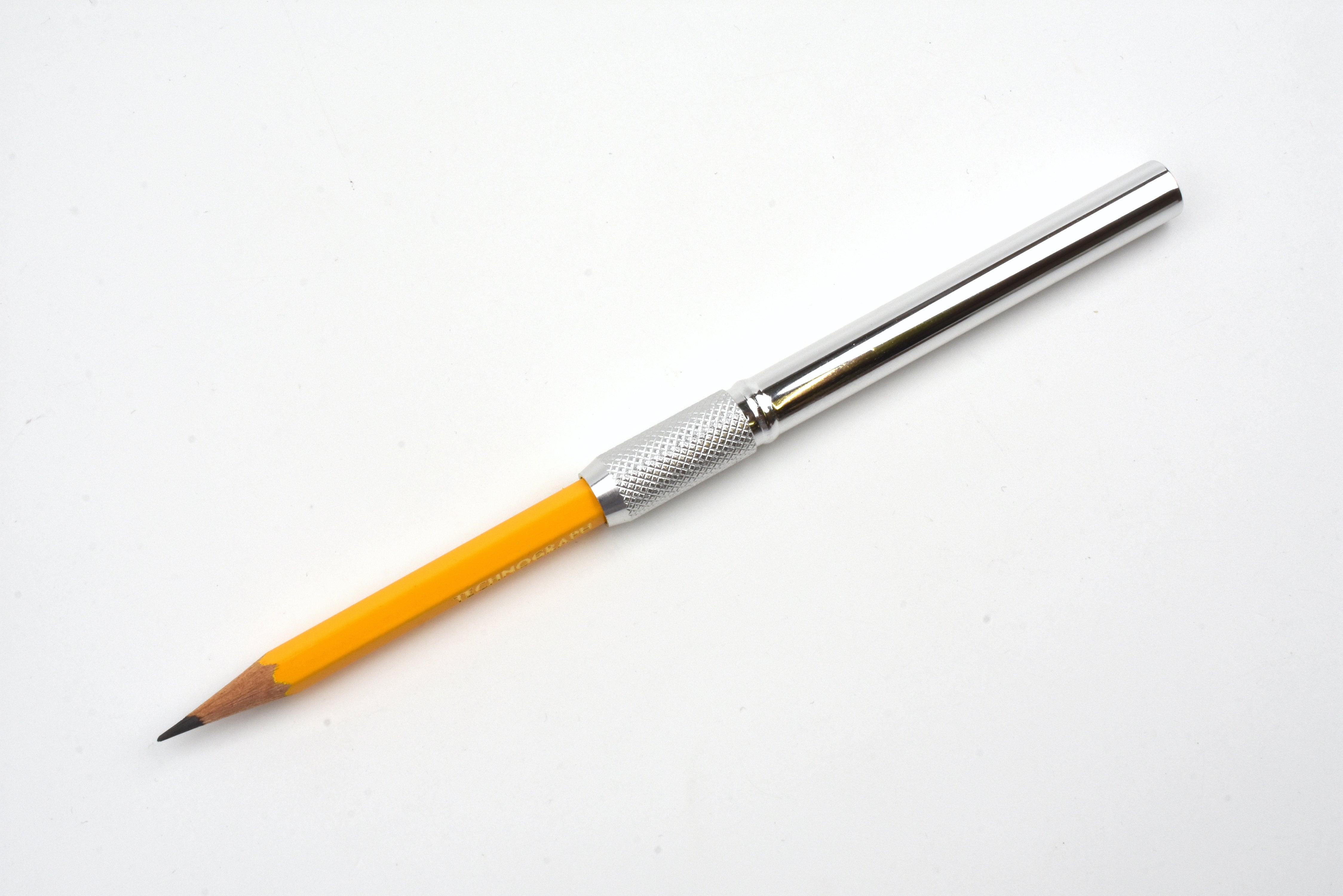 A sleek and sturdy aluminum pencil extender designed for standard-sized pencils. Each holder features a non-slip grip for comfortable use and a durable build with aluminum and brass components—perfect for getting the most out of your favorite pencils.