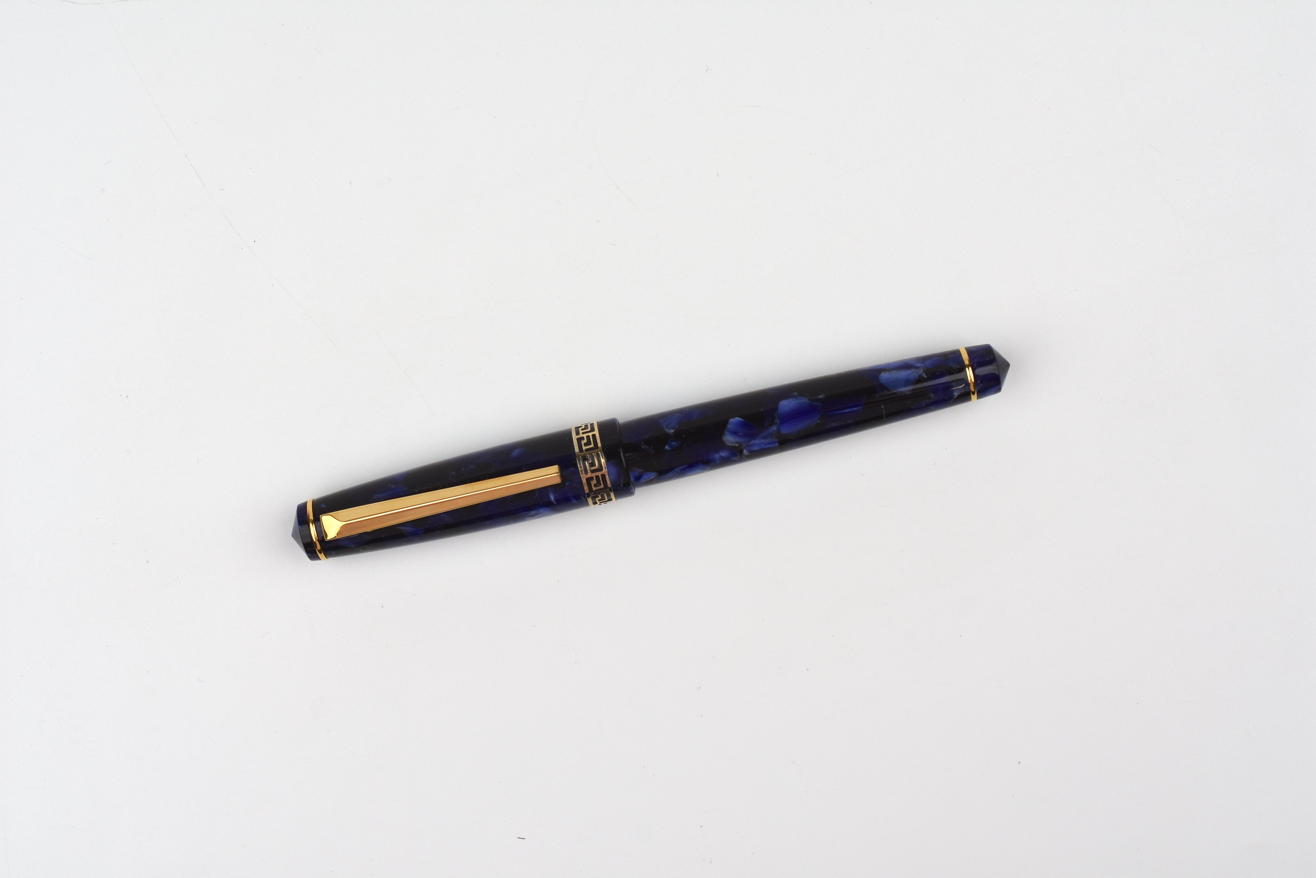 The Laban Rosa Fountain Pen Series draws inspiration from the stately elegance of Neoclassical architectural columns, featuring a gently tapered, perfectly round barrel that reflects this classic form with a modern touch. Crafted from lightweight, marbled translucent acrylic, each pen showcases vivid color variations and is accented with gold-plated details, including a sleek triangular clip on the threaded cap—making it both visually appealing and comfortable to use, especially for those new to fountain pens.