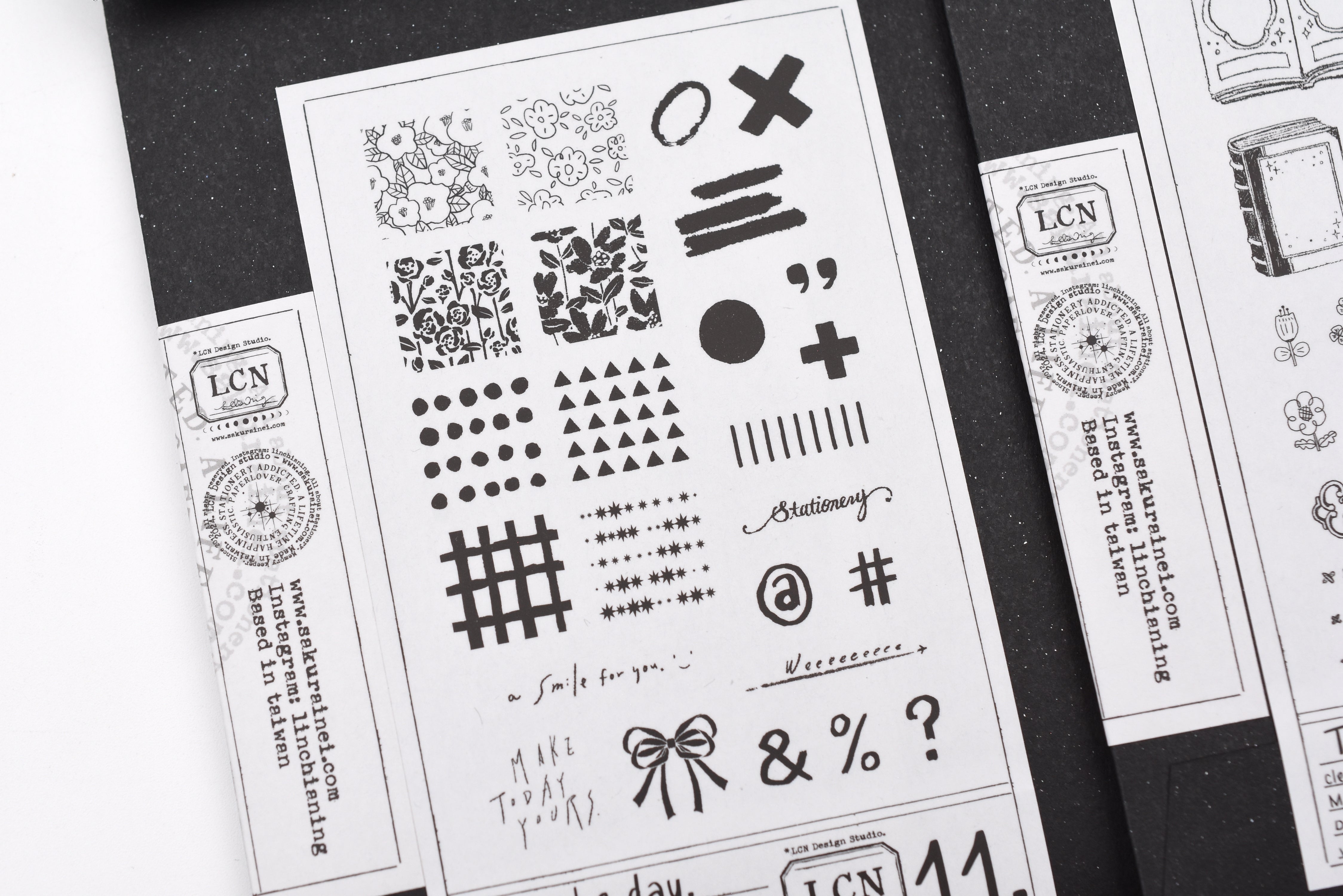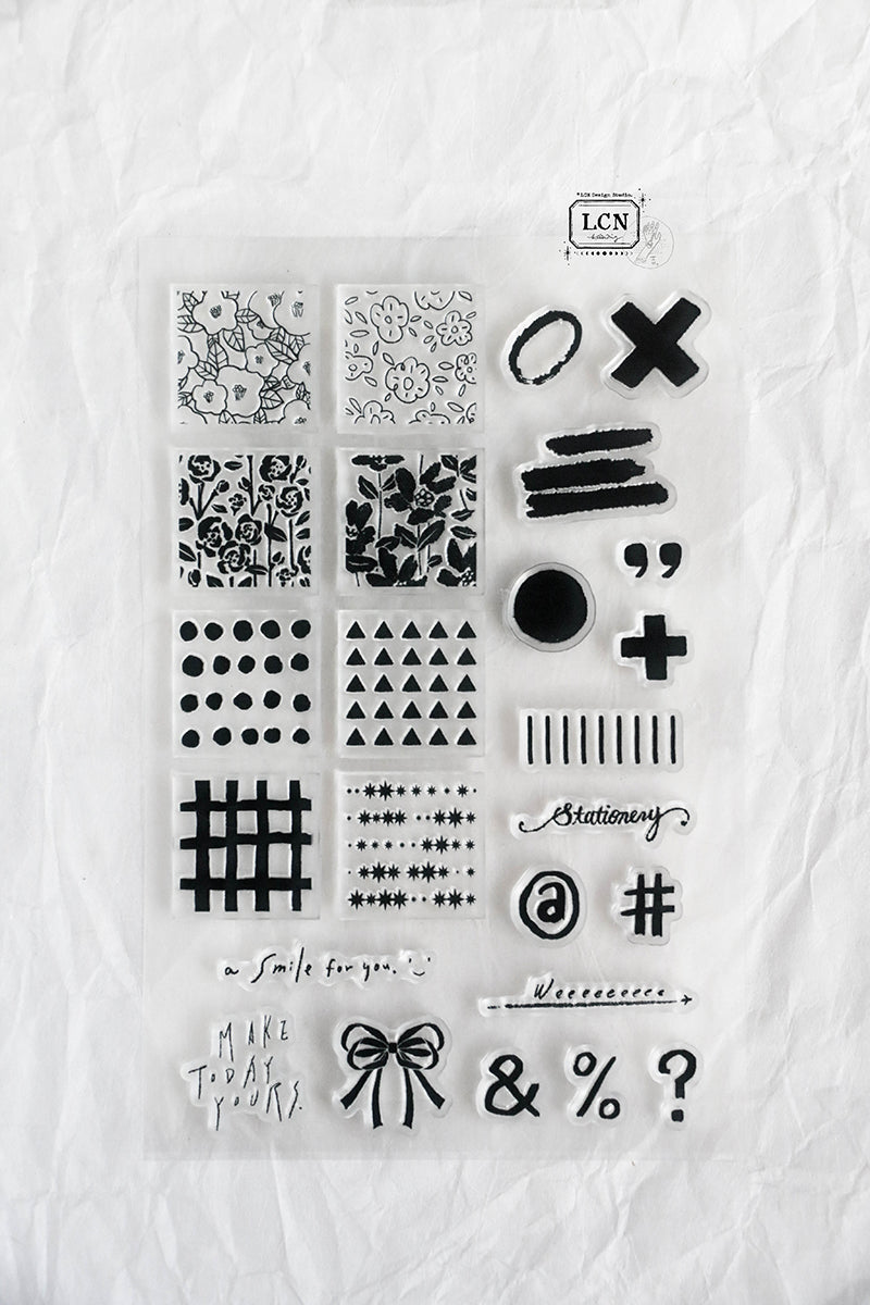 LCN produces clear stamps designed for crafting backgrounds in planners or journals. Combine everything in this collection and layer them below or above your other stamps or paper bits to create interesting textures and add depth/dimension!