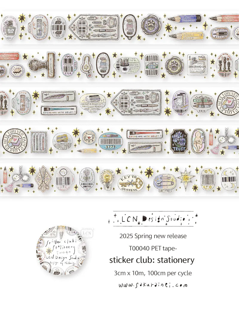 LCN UV Printing Matte PET Tape - Sticker club features two different designs: Life and Stationery. The Life design features intricate illustrations of a variety of different animals, fruits and other items in the shape of price tags and labels with beautiful unique boarders. The Stationery design features intricate illustrations that focus on a variety of different stationery items in the shape of price tags and labels with beautiful unique boarders. These UV printing matte PET tapes are perfect for layering, journaling, and adding a timeless touch to any project.