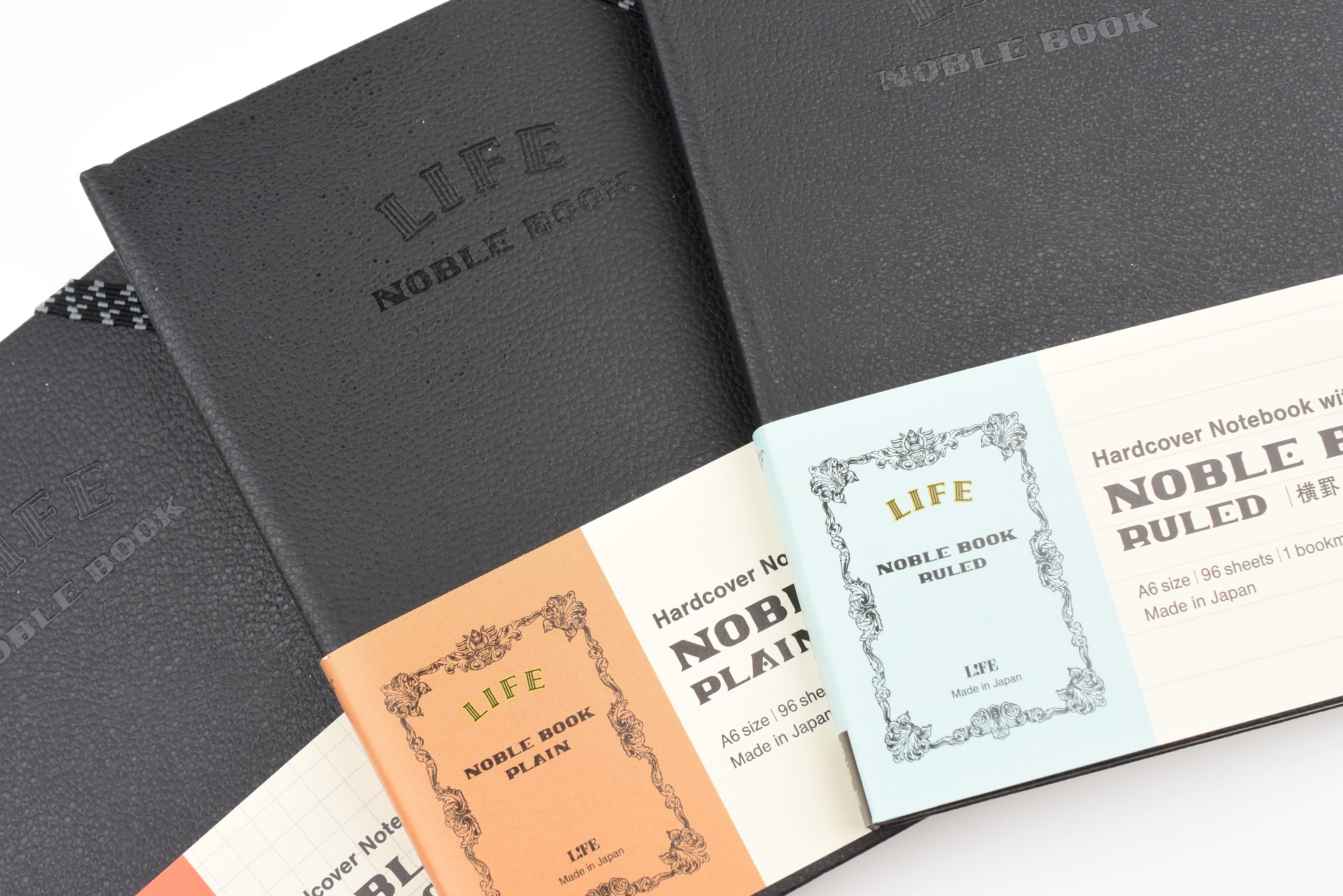 The premium Life "Noble" paper is now available as hardcover notebooks! The durable hardcover makes them perfect for journaling purposes or everyday-carry notebooks at work. These notebooks also come with elastic twill bands that can be used to keep the books closed. This fountain pen friendly paper is rounded on four corners to give it a premium touch, and dyed on the edges with signature colors corresponding to Life's Noble series: Orange(Grid), Brown(Plain), and Blue(Ruled). These notebooks are also available in sizes including A5 and A6.