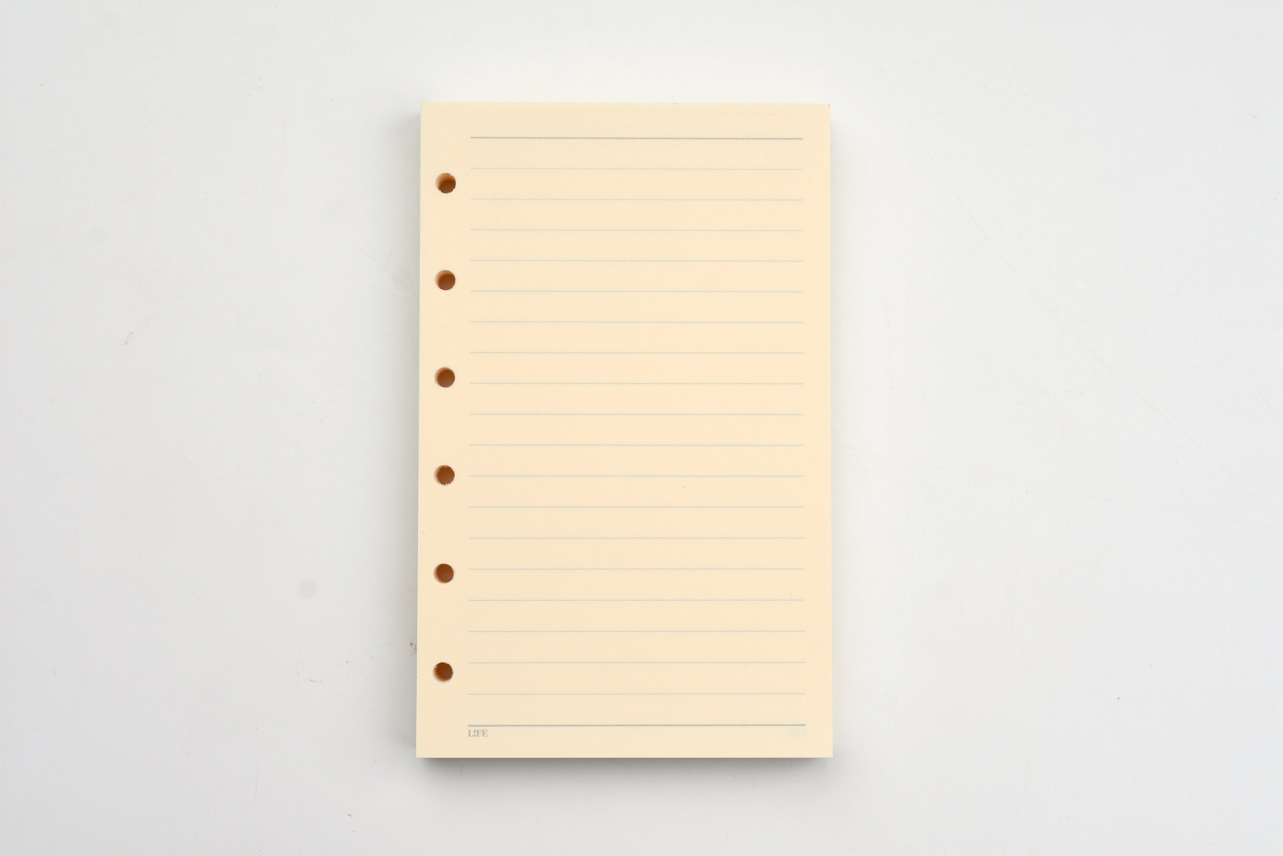 This "Noble Note" Notebook line by Life features generous refills for Pocket Size binder or ringed planner. They come in a pack of 100 sheets of Life's high quality cream-colored paper. These refill pages are 6-ringed and will be compatible with standard Pocket Size binders(127x80mm). Each notebook style (plain, section and ruled) comes in a brightly colored soft card stock paper cover with a vintage style border. Inside this refill pack, you will find exceptionally smooth, acid-free paper that's great for fountain pen writing.