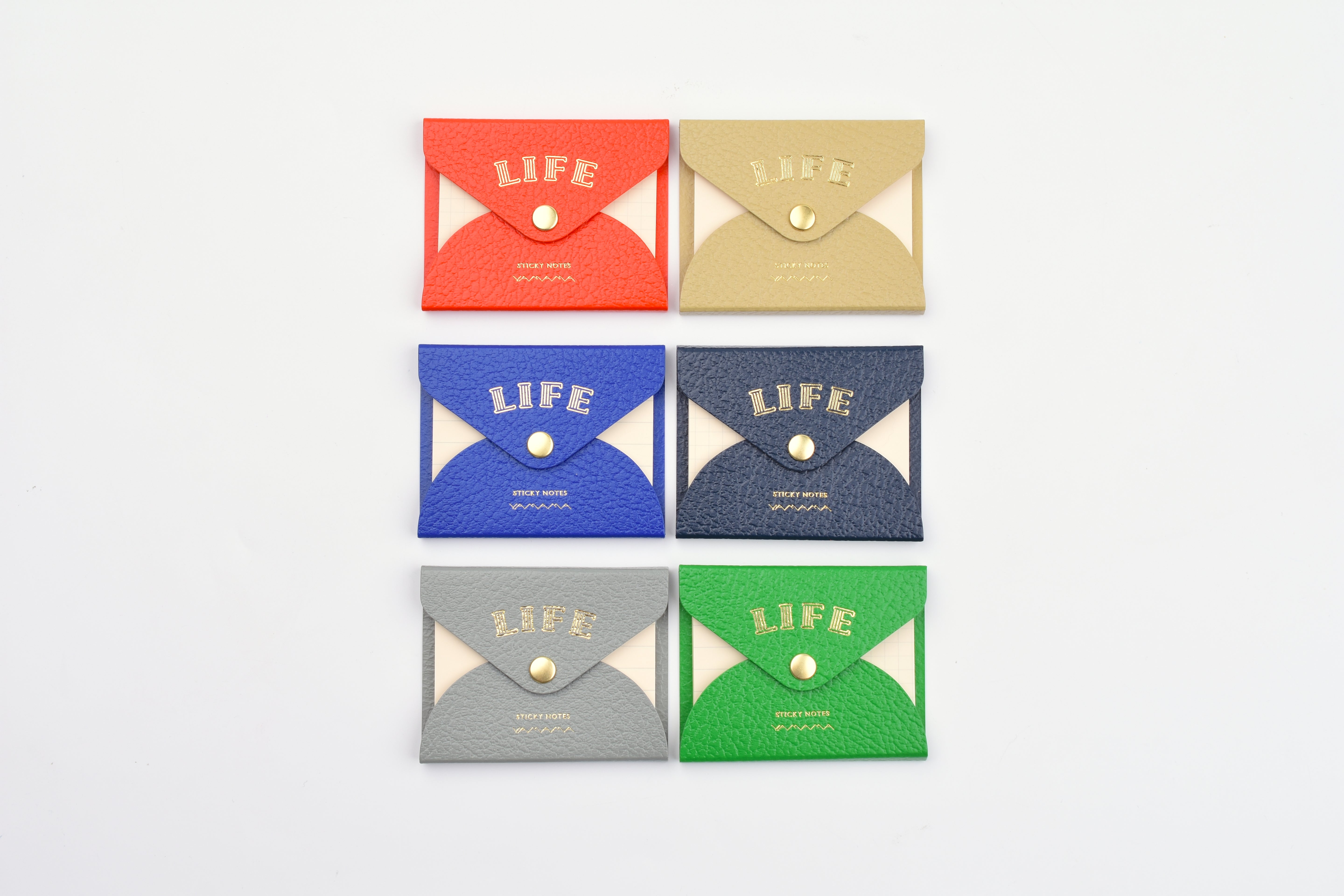 It features Life's original "L Writing Paper," admired for its remarkable smoothness and quality. The sticky notes are housed in a sturdy paper cover with a pebbled leather texture, providing an elegant look, protection for the inner sticky notes, and a portable casing.