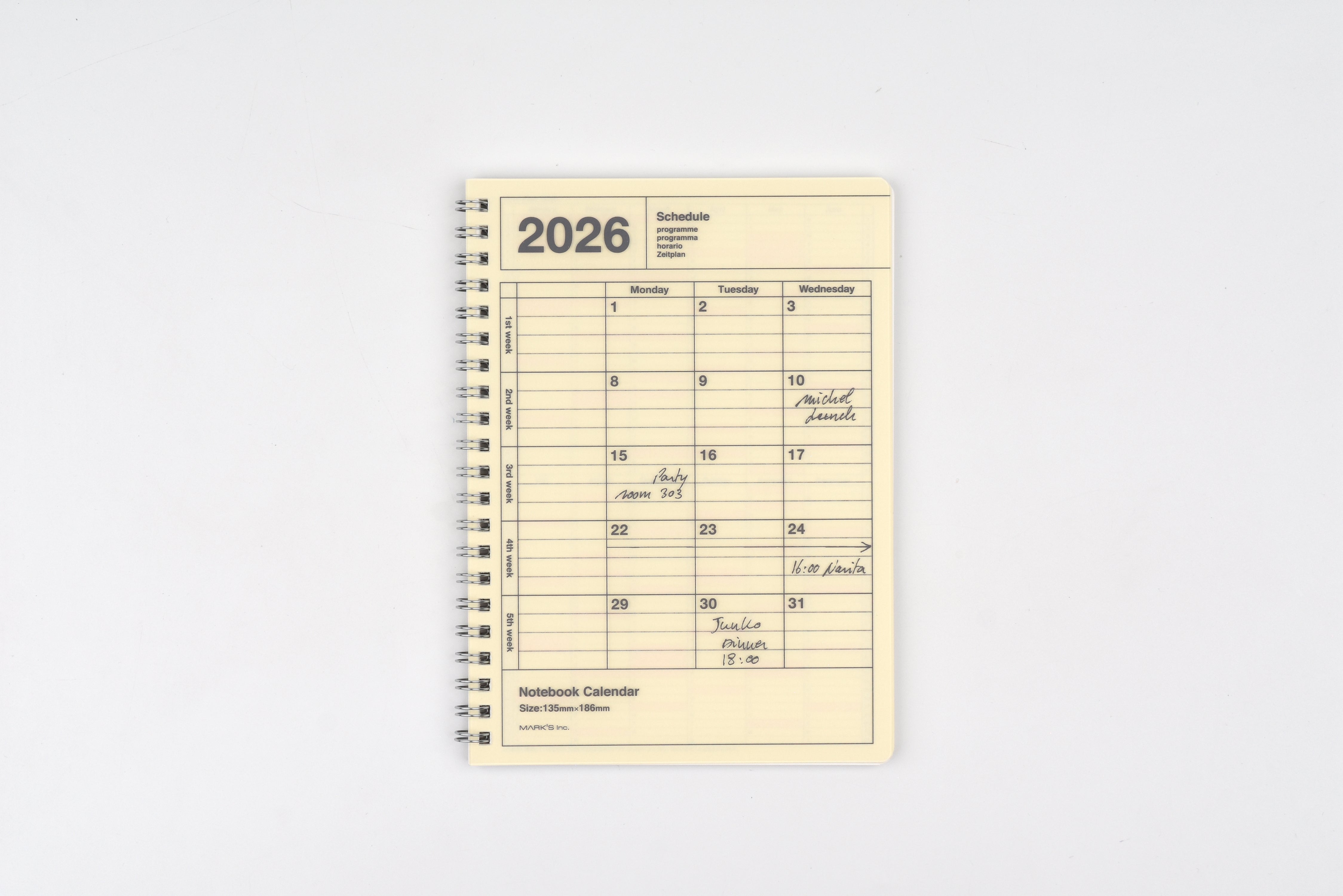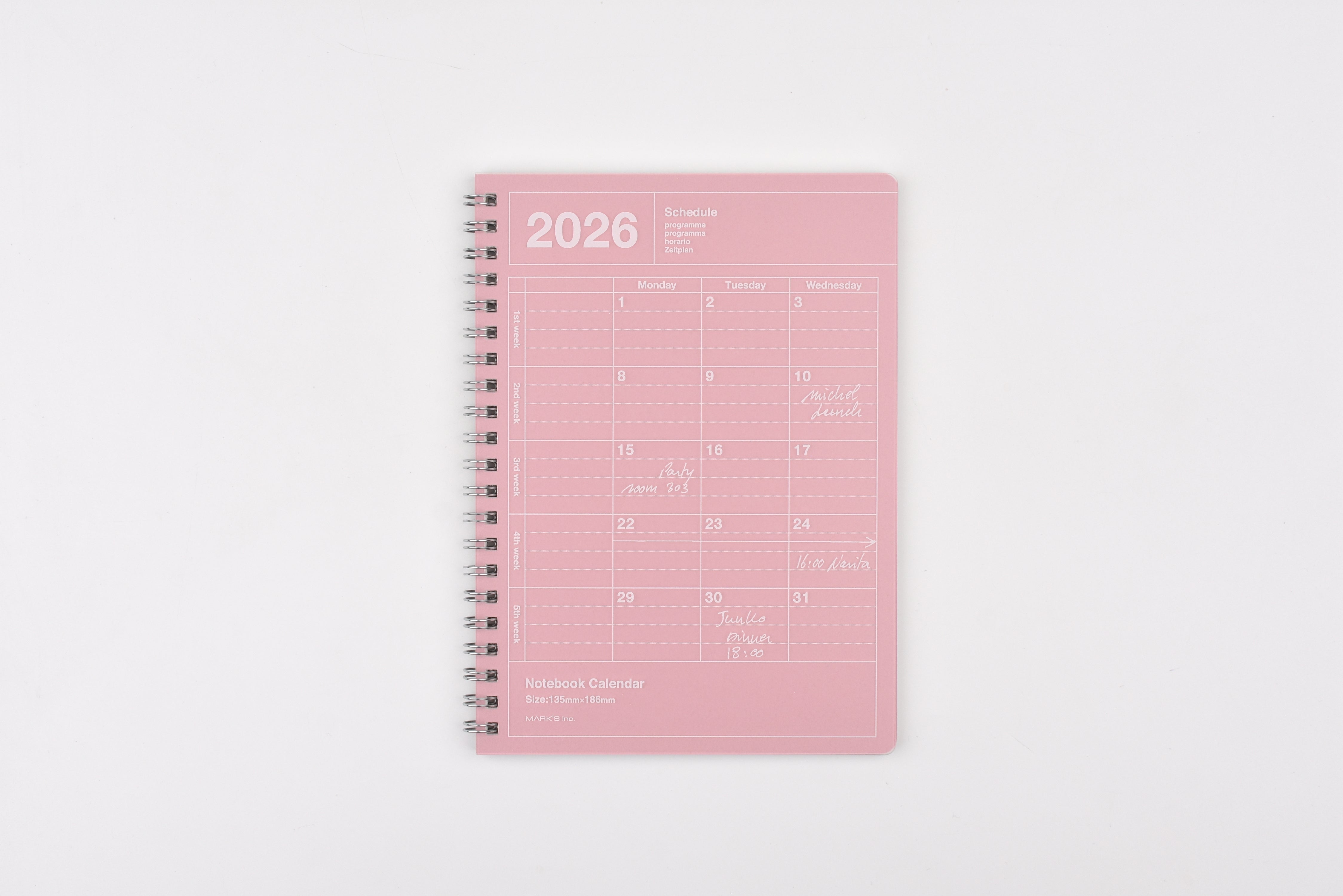 Mark's 2026 Notebook Calendar - Vertical - Monthly Block - B6