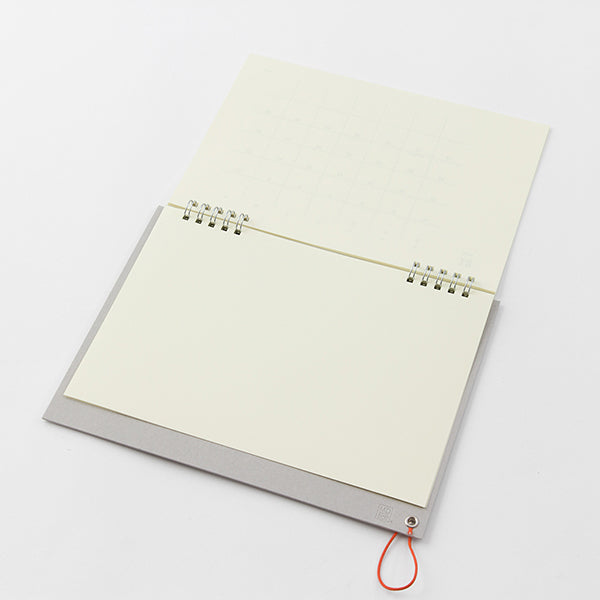 This minimal desktop calendar displays one month per page with blank space on the right for quick notes and additional unlined memo pages for more writing space. The attached string can be tied between the holes, making it easy to stand and fold the calendar. This is the perfect desktop calendar for the minimalist who wants to see a whole month in a glance.