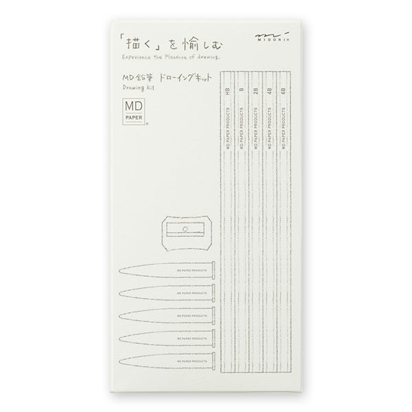 The MD Pencil uses the same colors as MD Paper for its standard honeycomb-shaped body that is easy to hold with the thumb, index finger and middle finger. The original MD Pencil set comes with lead B for general writing. Early 2019, Midori came out with this new set a pencil designed for sketching. The drawing kit comes with 5 pencil caps, one sharpener and 5 pencils from HB, B, 2B, 4B to 6B.
