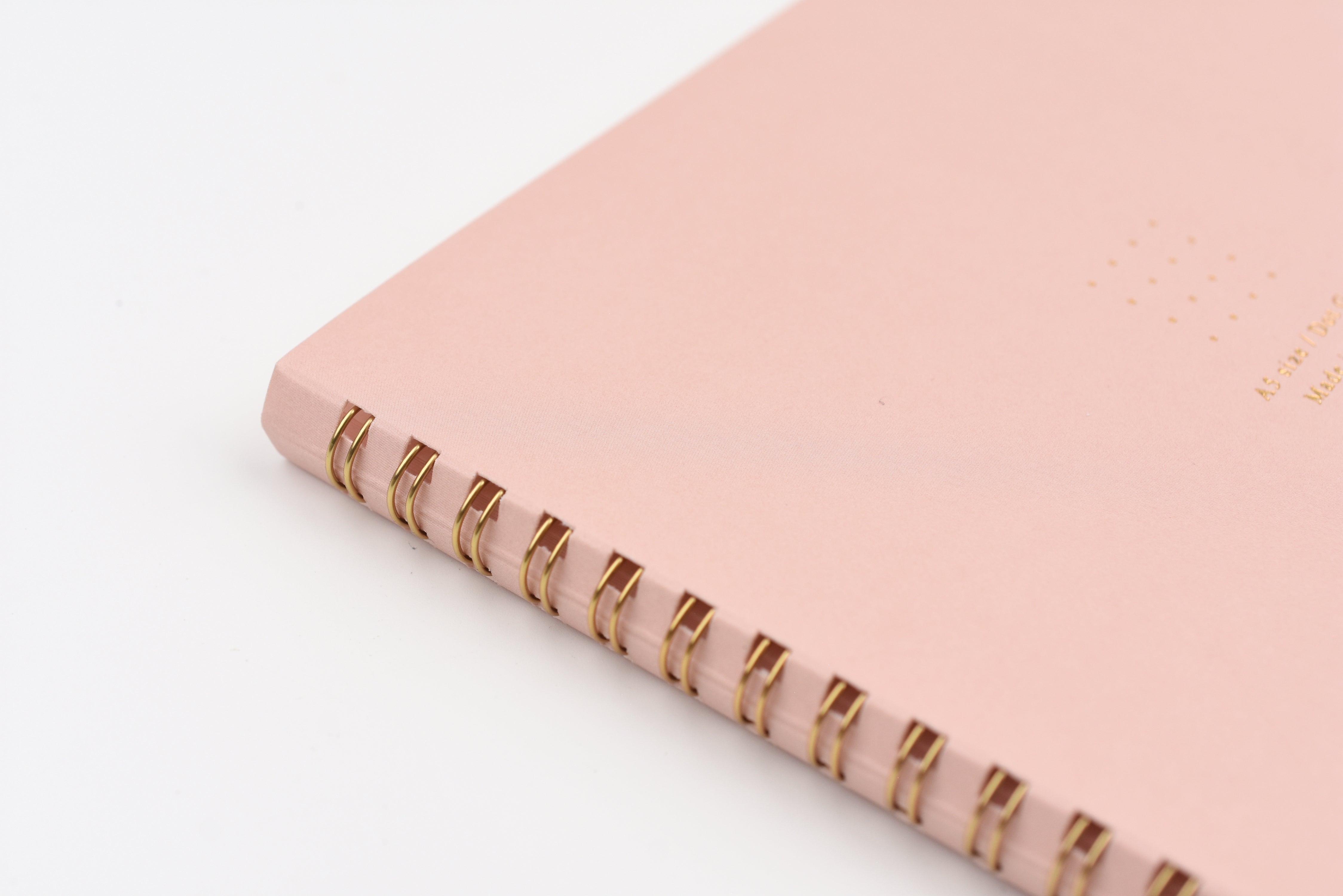 MD Ring Notebook Soft Color - A5 - Dot Grid - Pink. These spiral notebooks come in a wide variety of color covers with matching tinted dot grid paper. Moreover, the muted colors make it perfect to use in both professional and casual settings. The front cover features a simple design in gold foil and is bound together by golden twin ring binding.