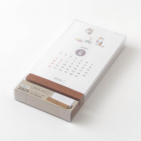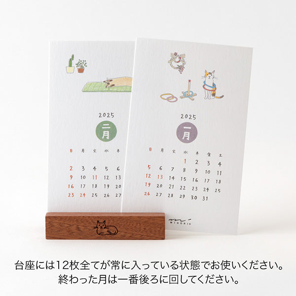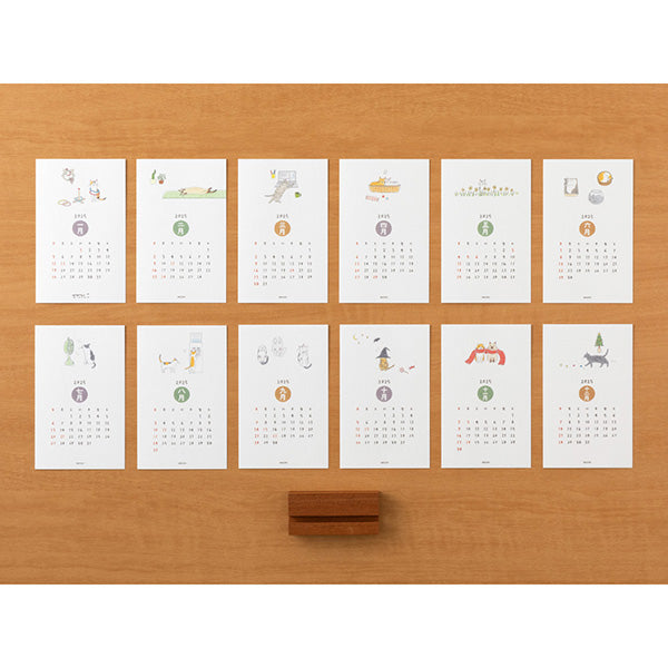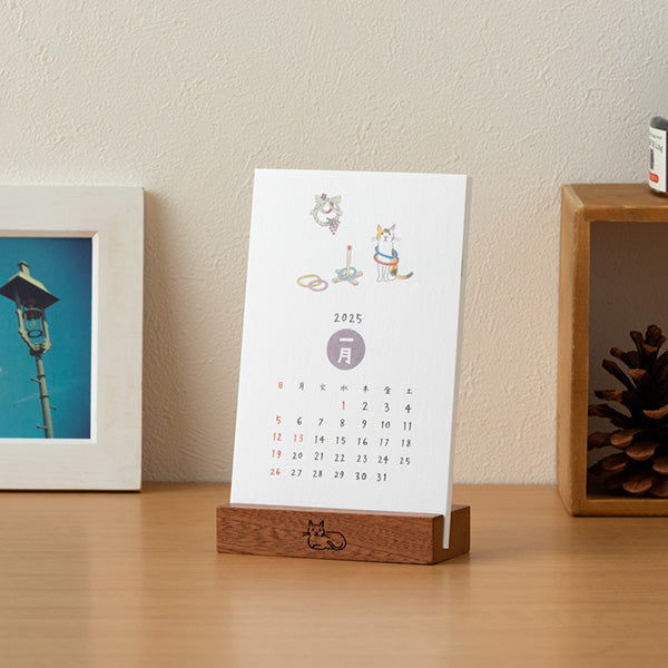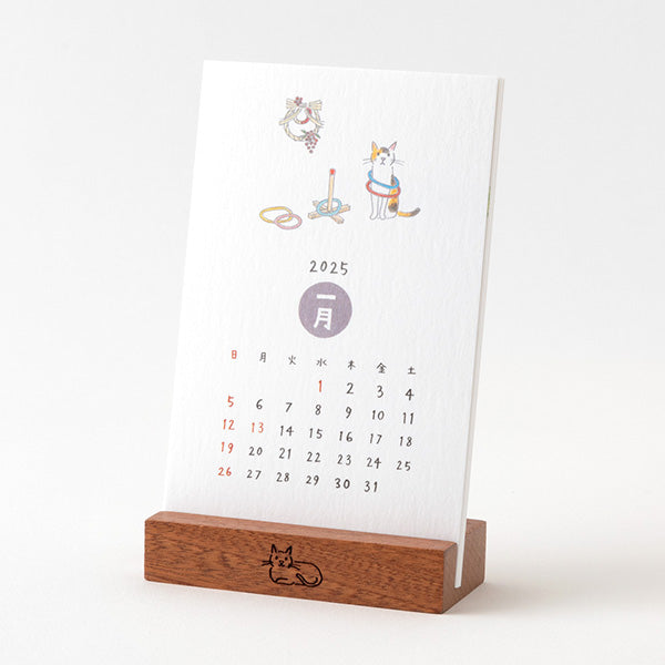 This charming and functional stand calendar, complete with a textured wooden base, offers a seamless way to organize your year. Showcasing whimsical cat illustrations by the talented Sayo Koizumi, each month brings a playful touch of joy to your daily routine.
