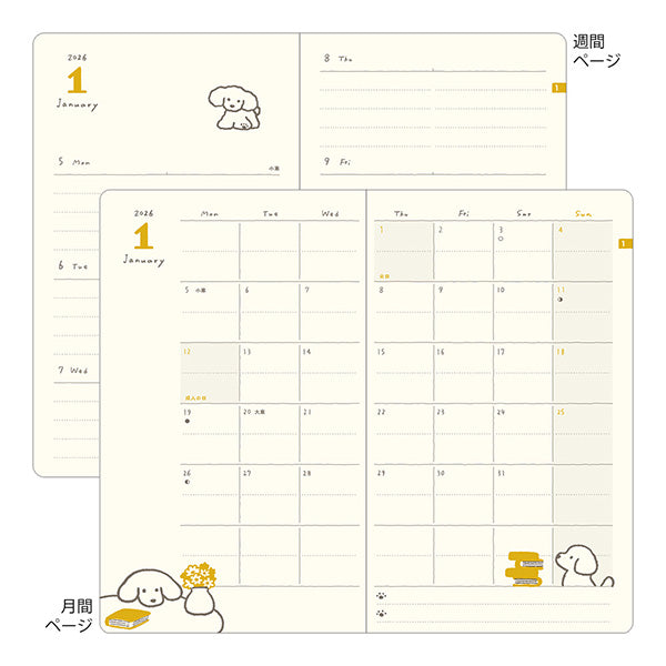 Midori Book Style Diary 2026 - B6 - Monthly Block + Weekly Schedule