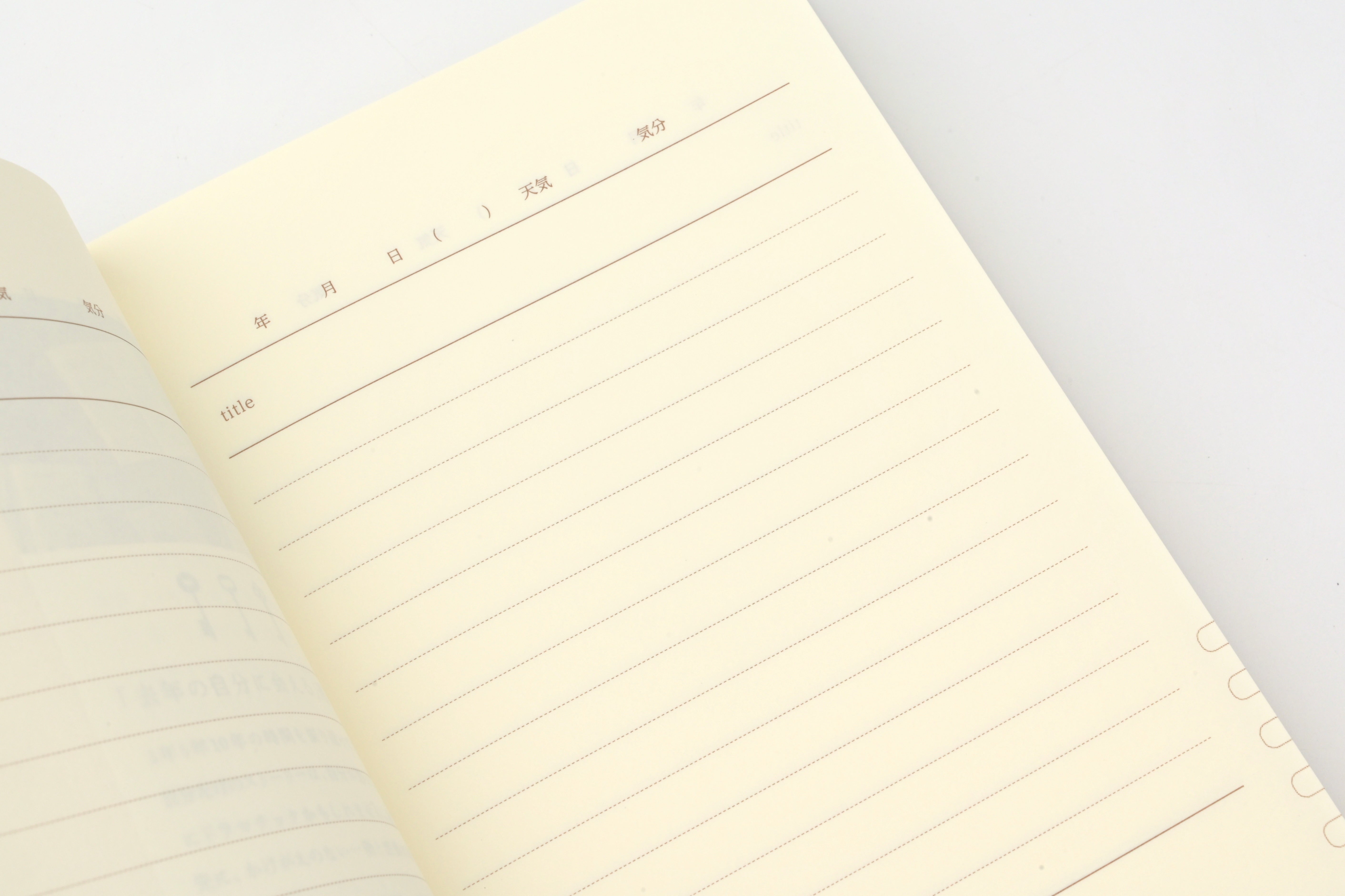 The pages are bound using a durable sewn binding that allows the diary to open flat for comfortable writing. It also includes a helpful indexing system that lets you assign five categories on the title page and mark them on the index pages, making it easy to revisit your entries by theme later on.