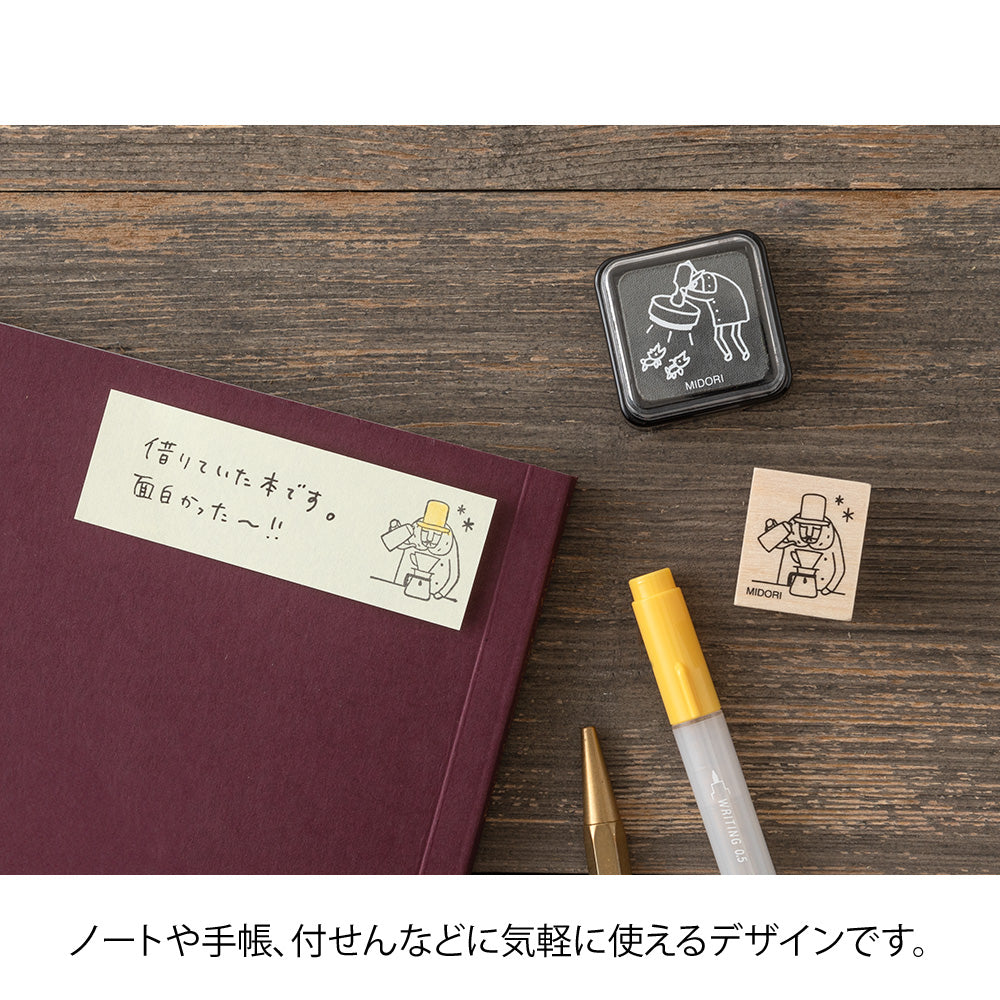 Among this fun collection is a limited edition wooden stamp, "C pattern," showcasing Ojisan quietly making coffee. Treat yourself to this charming stamp to add a playful touch to your leisure time or decorate your personal items. Whether adorning notebooks, planners, or sending messages on sticky notes, this stamp serves as a versatile tool. For those using planners or notebooks with double-sided pages, it's recommended to avoid excessive inking to prevent bleed-through.