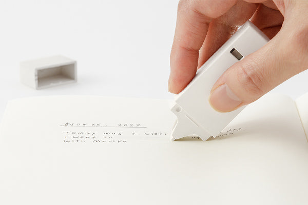 This correction tape made with an innovative material composed of 51% paper and 49% polypropylene, which makes both the tape and the case more environmentally friendly. Its matte texture is nice to hold in your hand and the tape blends well with paper to undo your errors! The soft white blends well with white paper, while the cream option works well with off-white paper. The 6mm tape is perfect for 7mm ruled pages.