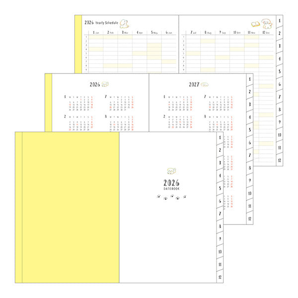 Midori's Pocket Diary – Dog 2026 edition is a storybook-style monthly and weekly planner featuring adorable dog illustrations by Natsumi Teraoka, where each page captures the feeling of changing seasons with rainbow-outlined pups and vibrant colors. Made with Midori’s MD Paper and cloth binding, it also includes a string bookmark, monthly index tabs, a pen loop, and a protective PVC cover.