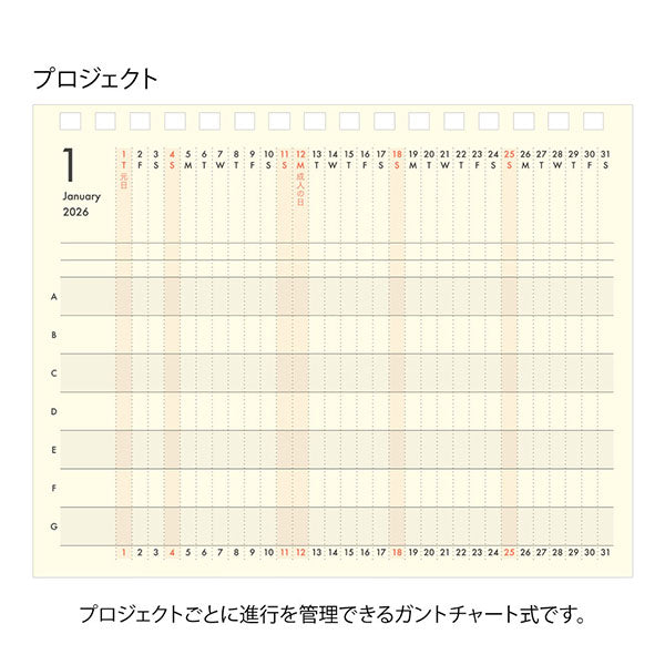 The +Stand Diary is a planner designed to be a desk calendar. The B6 size makes it easy to carry around and keep on a desk without taking up too much space. It's a great planner for overviewing yearly projects at home or in the office. The planner features yearly pages, monthly pages, project pages, grid pages, and to-do list pages.
