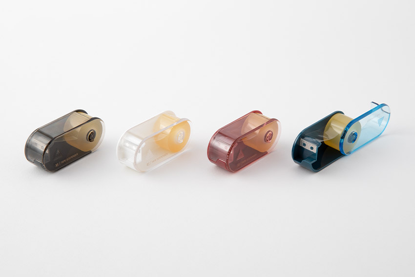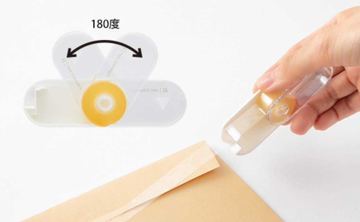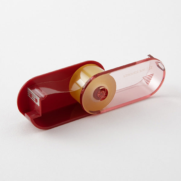 The Tape Dispenser is a mini roll of tape with a built-in tape cutter. The tape is a 5 meter roll of 12mm wide cellophane tape. The protective cover can be slid open when the tape is in use, and closed when in storage so that the tape does not get dirty.