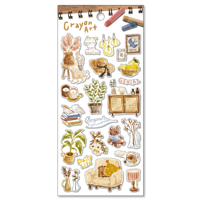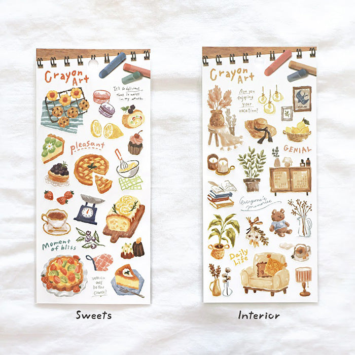 These crayon-style illustrated stickers come in a variety of motifs, making them perfect for adding accents to your everyday decor!