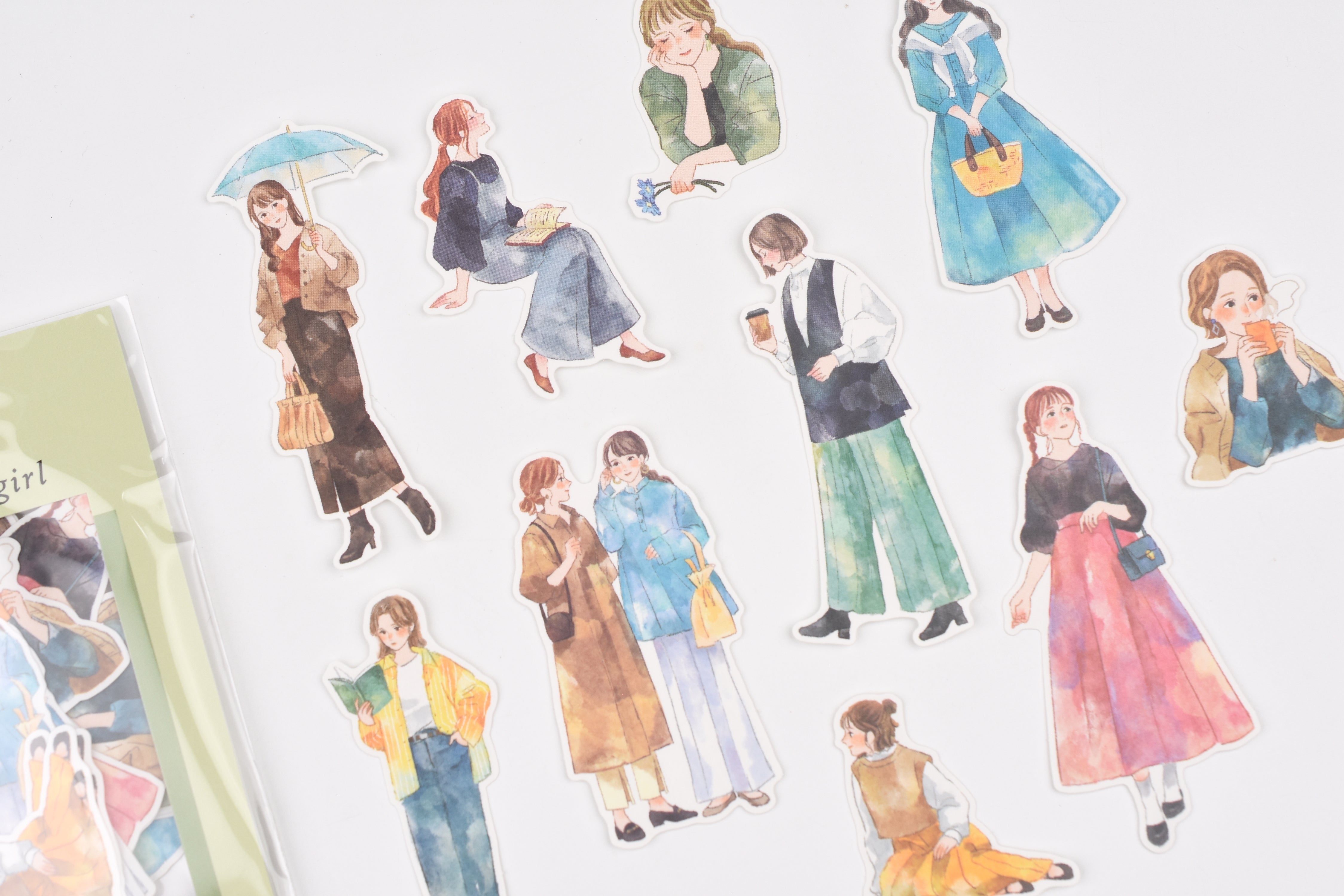 Featuring charming watercolor-style illustrations of girls in various themes—from casual everyday looks to sweet, playful, and stylish fashion—these stickers add a soft, artistic touch to planners, journals, and crafts.