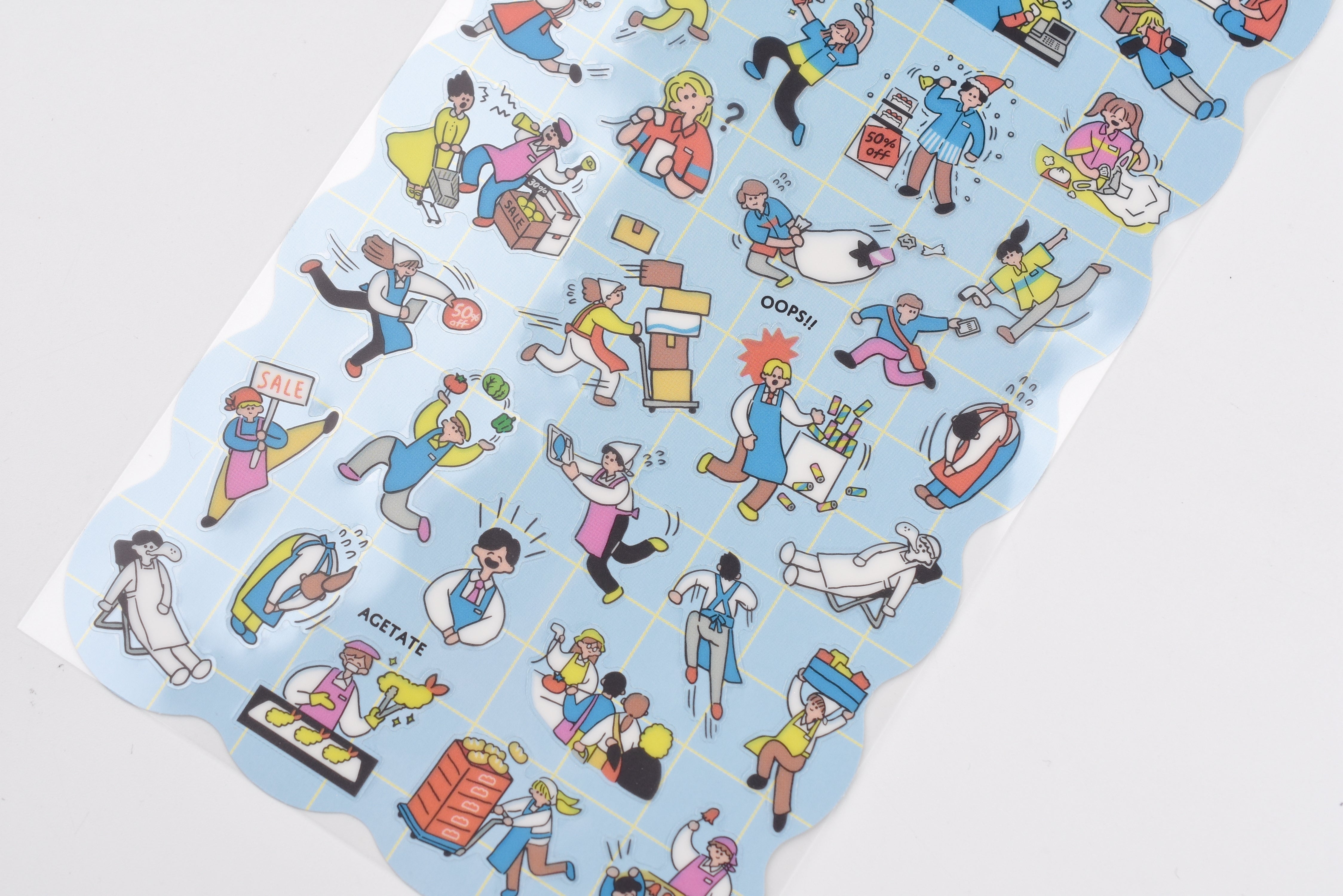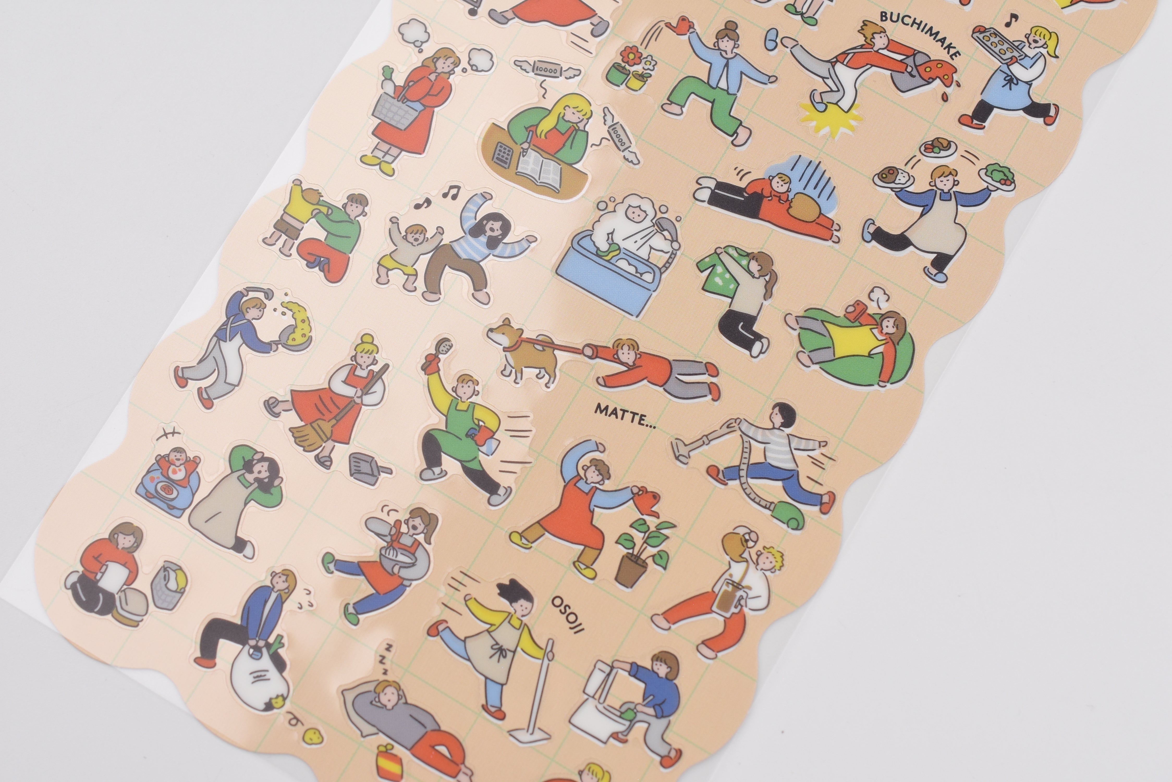 Fun stickers featuring everyday moments illustrated in a charming, comical style. Each sheet is filled with expressive characters and relatable life scenes, perfect for adding humor and personality to planners, journals, and scrapbooks. These sticker sheets are made with transparent PET, meaning the background of each sticker is clear, making them perfect for layering or adding a tiny pop of color to a journal.
